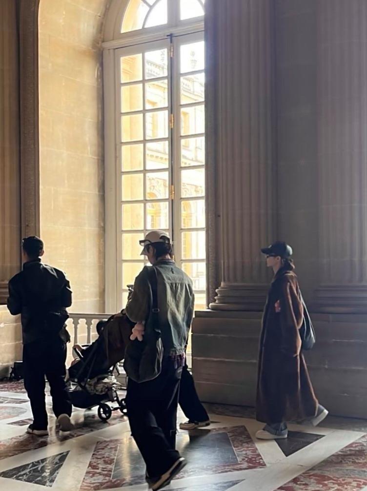 戚薇和李承铉带小儿子巴黎游,戚薇穿毛皮大衣贵气爆棚,李承铉寸头背影超帅!