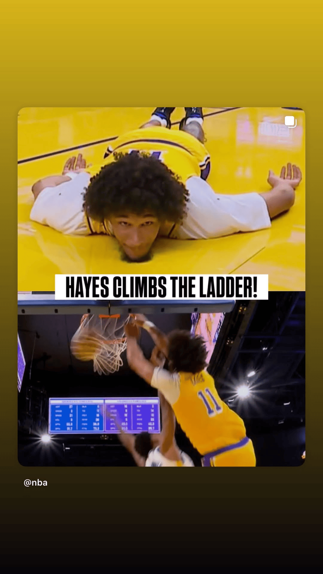 虎扑10月06日讯湖人球员贾克森-海斯更新个人社媒,转发NBA官方晒出的自己今日比赛中的隔扣瞬间。