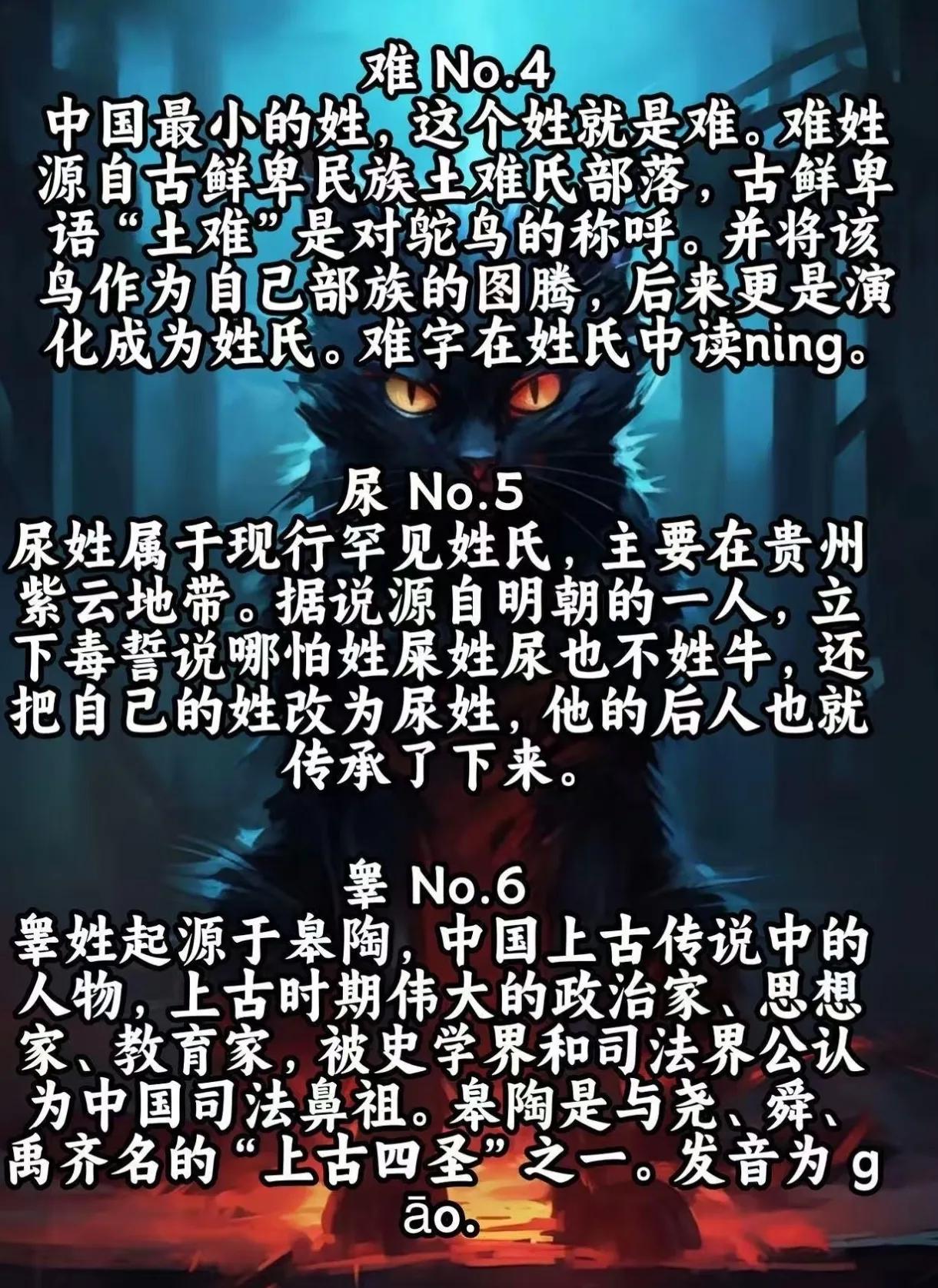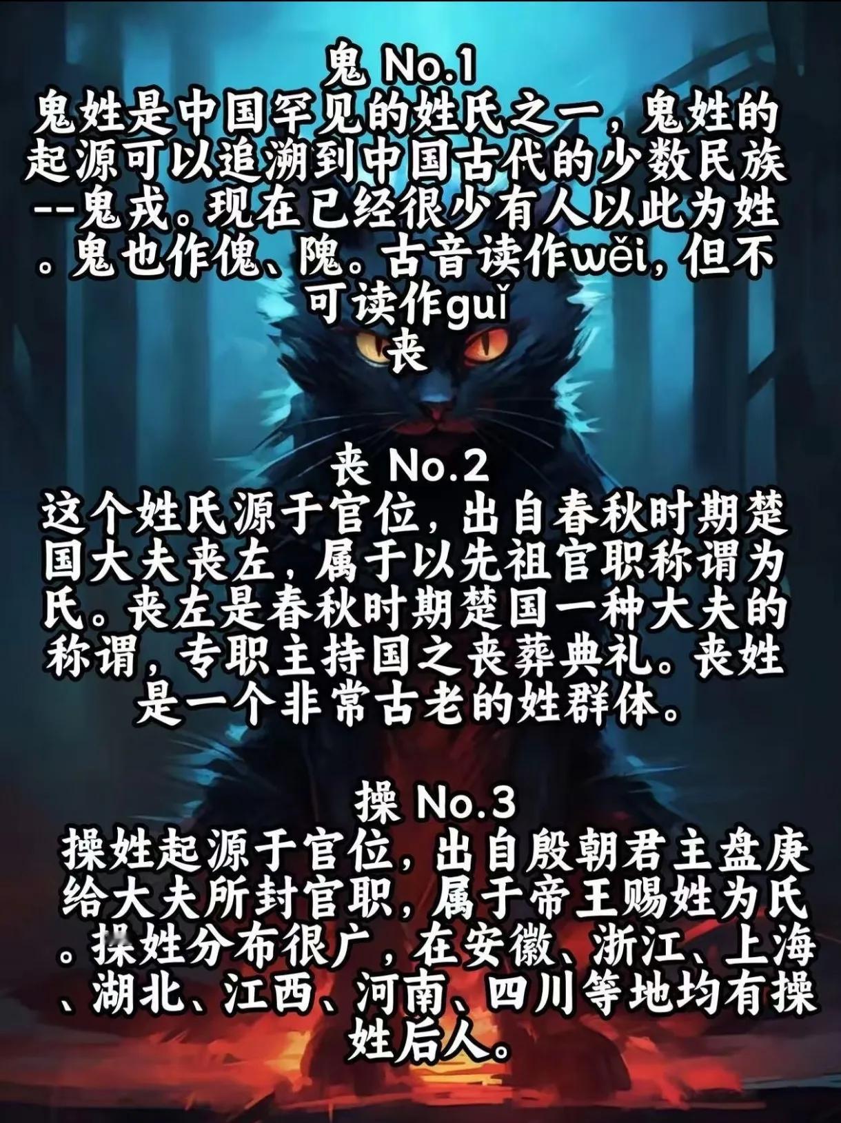 中国八大邪门姓氏,现实中你见过几个? 这些姓氏大多有古老渊源,并非凭空出现,只是随着时间推移,部分因改姓或人口减少变得罕见。 现实里能遇到这些姓氏的人,概率堪比中彩票,你要是见过其中一个,都算“开眼界”了。