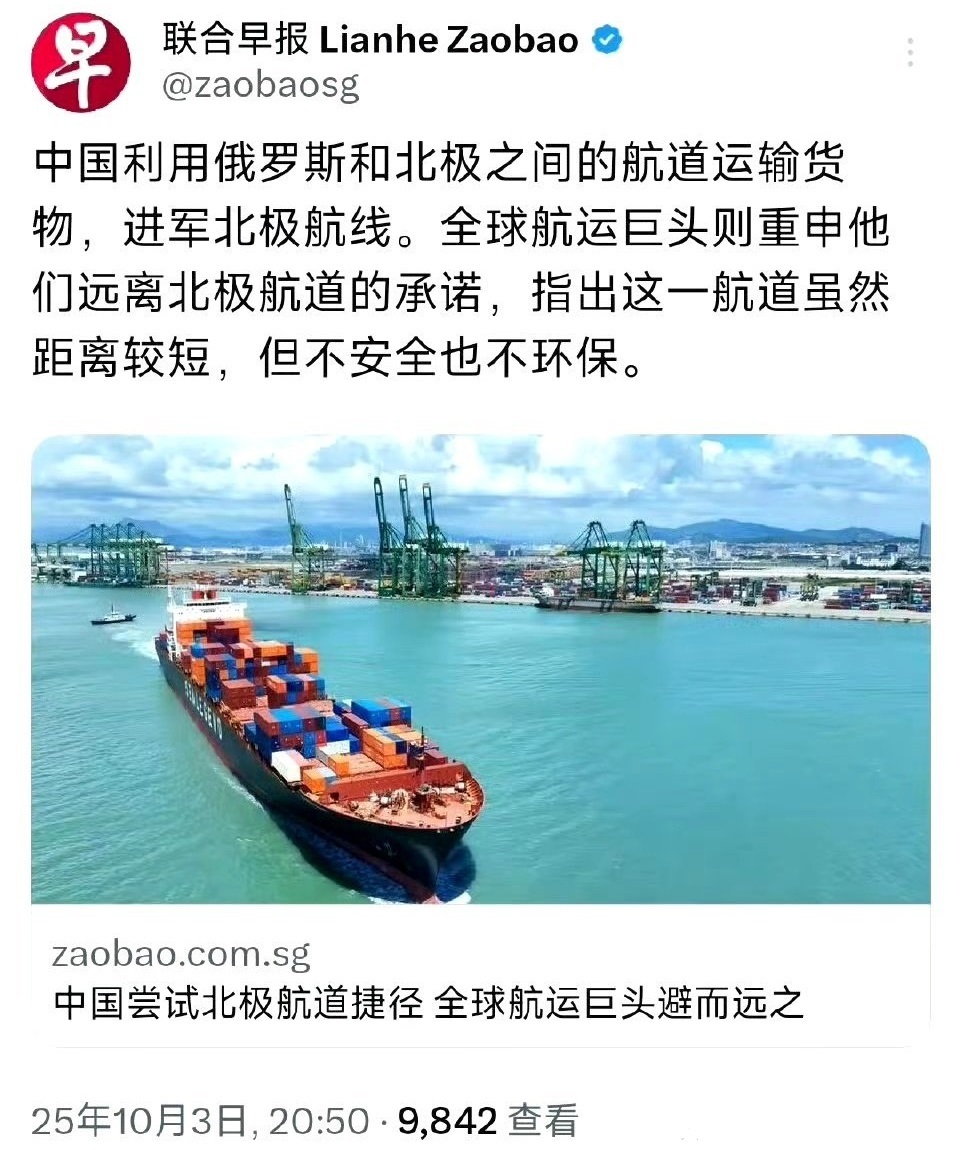 中国使用北极新航线,新加坡媒体:既不安全,也不环保!我只看出来了两点,随着马六甲