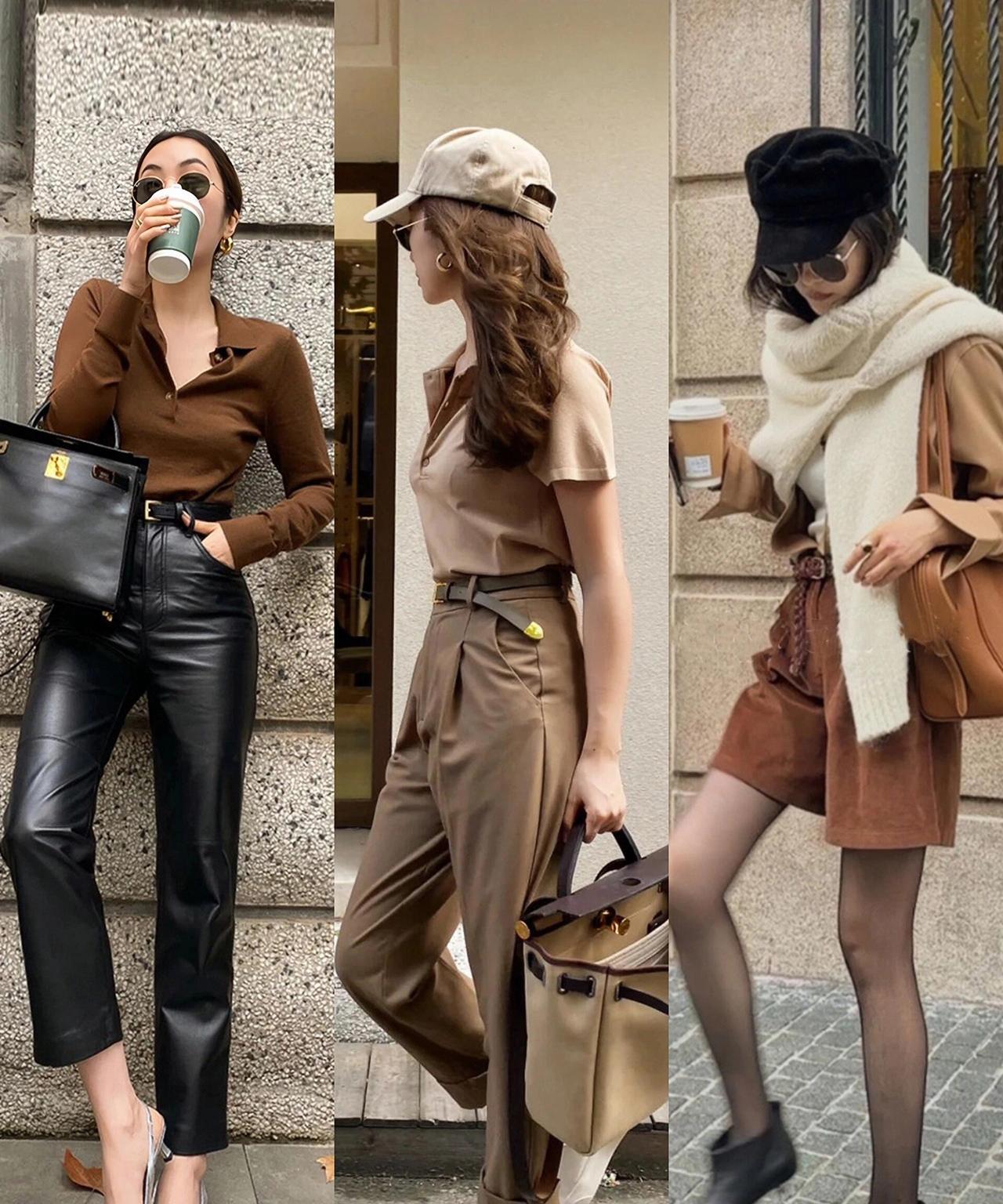太喜欢这种复古优雅的穿衣风格了! 以用咖色大力色系为主,更加的沉稳知性,非常适合30、40岁的熟龄姐妹们。 当然也会有人担心咖色容易显老气,那么就可以模仿这里的街拍。 通过宽松的版型营造出松弛感,再通过叠穿混搭提升时尚感,时髦减龄!