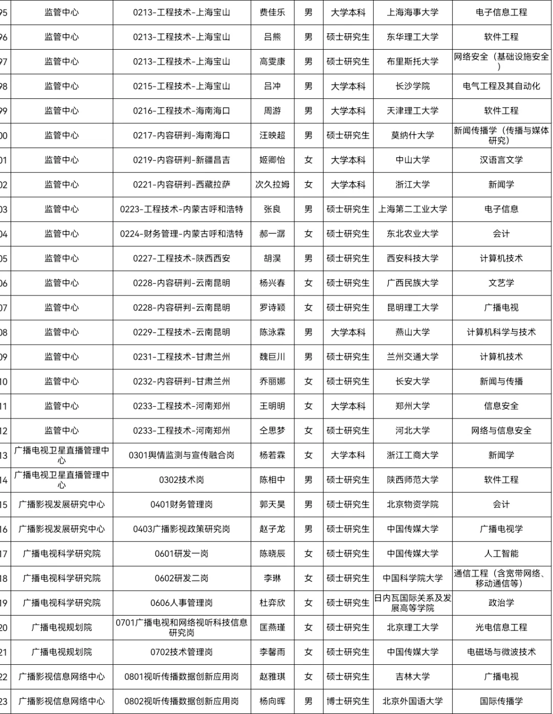 ✅gj广电总局录取录取名单已经公示! 👏广电总局所属单位每年都会招收大量应届毕业生,除了北京岗位之外还有大量的地方岗位。 🎈从录取专业上来看,除了更加专业对口的理工科之外,仍然有大量的文科艺术类专业。 🎈从学校上来看也不止是头部高校,院校录取上比较下沉。