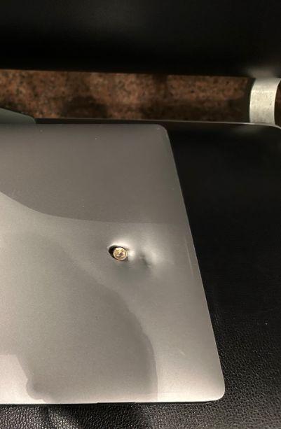 在警局做完笔录后,他打车赶往机场。直到过安检,需要把电脑拿出来时,他才震惊地发现,自己用了五年的笔记本电脑中弹了!