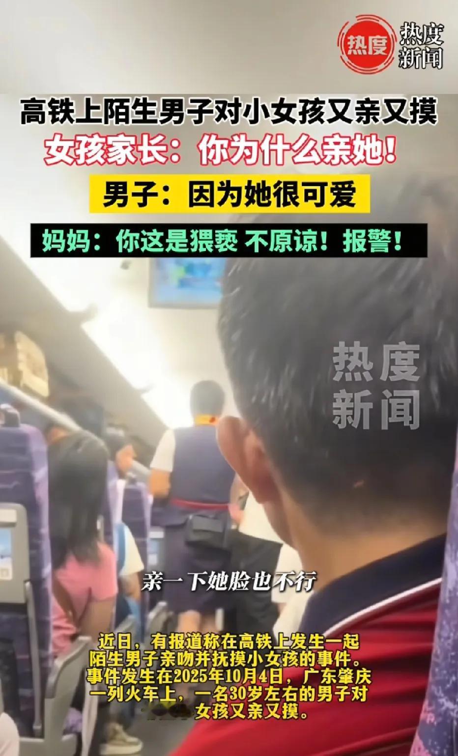 广东肇庆,30多岁男子座位挨着小女孩。见女孩模样可爱,他先是亲了亲女孩脸颊,又伸手去摸她的手臂,周围乘客都以为是亲子关系,没人有意见。直到女孩妈妈匆匆赶来,大家才知道,她的座位和孩子根本不在同一处。女孩的妈妈看到眼前一幕,她当场怒斥男子猥亵,立刻报警。 “住手!你是谁?凭什么碰我女儿!” 高铁车厢内,一名女子的厉声呵斥突然炸开,瞬间吸引了所有乘客的目光。 女子像护崽的母狮,猛地冲上前,将缩在座位角落、眼神惊恐的小女孩紧紧搂进怀里,死死盯着对面那个30多岁的陌生男人。 男人此刻手还僵在半空,脸上满是慌乱。 周围乘客这才后知后觉地反应过来:原来方才大家默认的“父女”,根本不是一家人。 事情要从半小时前说起。男子进车厢后,发现邻座是个模样可爱的小女孩。 女孩梳着羊角辫,穿着蓬蓬裙,大眼睛像葡萄似的,瞧着格外可爱。 他主动凑过去搭话,见孩子只是怯生生地往后缩了缩,没激烈反抗,他胆子便大了起来。 男子先是俯身,在女孩脸颊上“啵”地亲了一下,见女孩没哭,又得寸进尺,伸手去摸她的手臂,指尖甚至蹭到了女孩的皮肤。他动作自然,脸上还带着笑意。 周围乘客只当是父亲在逗弄女儿,没人多想。 而女孩妈妈上车时因和女儿座位分散,她一直没能陪在孩子身边,因为不放心孩子,她特意去一眼,就撞见了这刺眼的一幕。 女子一把将孩子护在身后,眼神死死盯着男子:我问你,她是你小孩吗?不是你凭什么做这种事。 男子红着脸辩解:我就是觉得孩子可爱,没别的意思,这么小的女孩应该没关系吧? 女子气得声音发颤,怎么没关系!非常有关系!我作为孩子妈妈,特别有关系!这种行为我绝对不原谅! 男子觉得女子有些小题大做,他说,在乡下,见着可爱孩子都爱逗弄几下,亲一口也常见得很。 女子越听越激动,她可爱你也不能有这种行为! 周围的乘客从一开始目睹男子经过,看到女子如此维护孩子,纷纷上前去证实男子的行为。 女子很气愤,你这是猥亵,要交给警察处理! 两人在车厢争执的一幕,被列车员看到,最终决定报警,男子被警察带走。 有人说, 系统购票应该改善一下,未成年购票要和成人一起。孩子在另外一个位置,大人都不放心。有时候人家也不愿意换座位。 也有人认为, 我作为一个成年男子,遇到很可爱的小女孩,最多伸一根小拇指给她,她愿意握一下就觉得很好了,其他行为绝对是过分了。 那么,从法律角度,如何看待男子的做法呢? 《刑法》第237条规定:对不满14周岁的儿童实施猥亵,无论是否征得同意、是否使用强制手段,均可能构成犯罪。 男子先亲吻脸颊再摸手臂的连贯行为,虽未触碰传统意义上的性敏感部位,但在高铁这一公共场所,其未经监护人同意的肢体接触,已对女童的身体自主权和心理健康造成侵犯,符合猥亵行为的核心特征。 《治安管理处罚法》第44条明确规定:猥亵他人的,或者在公共场所故意裸露身体,情节恶劣的,处五日以上十日以下拘留;猥亵智力残疾人、精神病人、不满十四周岁的人或者有其他严重情节的,处十日以上十五日以下拘留。 男子没有分寸感,明知与女童无亲属关系,仍主动实施肢体接触,具备明显的违法故意。 此案也警示:面对未成年人,任何肢体接触都应以征得监护人同意、符合公序良俗为前提,所谓觉得可爱绝不能成为越界的借口。 对此,你怎么看?