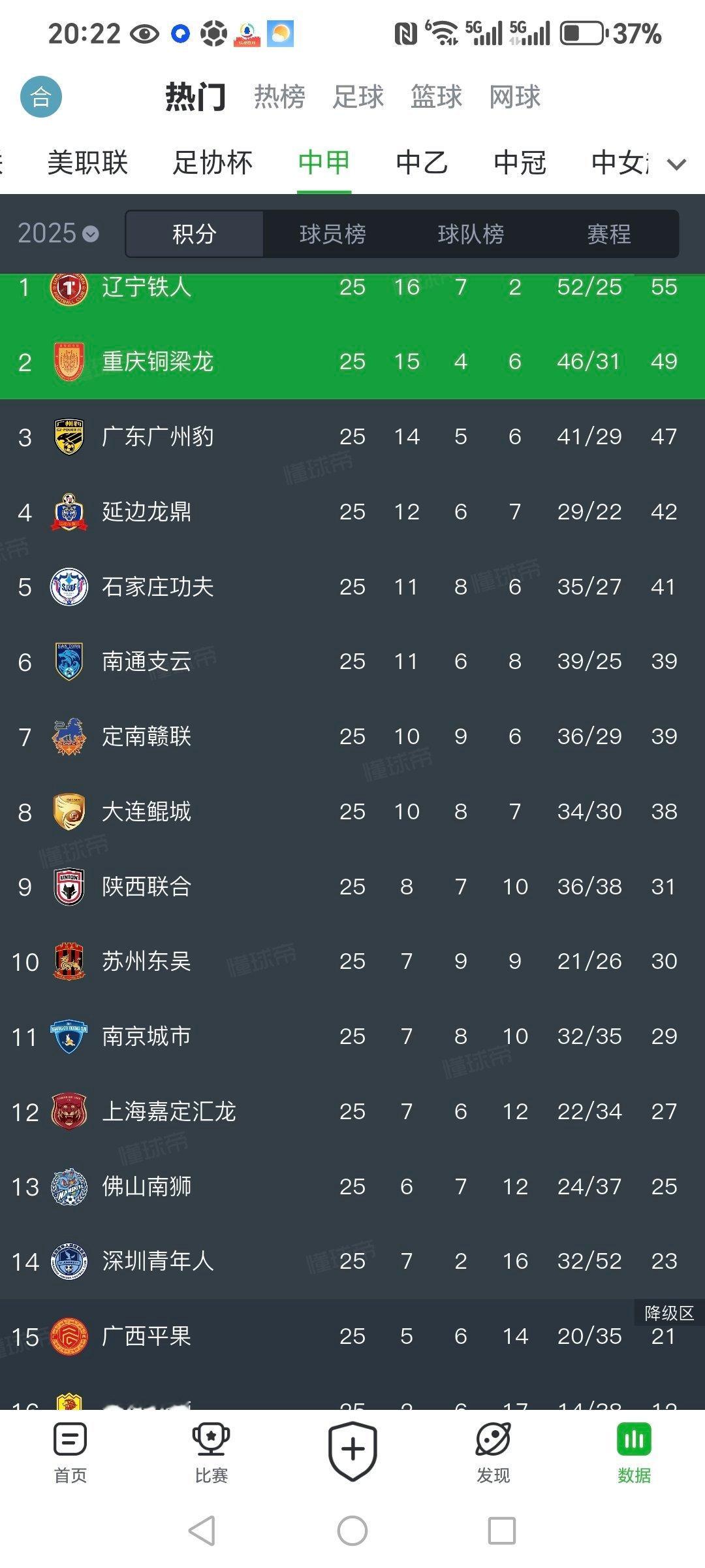而在目前的中甲保级军团,12分的青岛红狮基本锁定一个降级名额。广西平果21分排在倒数第二,他们身前的球队是23分的深圳青年人,25分的佛山南狮,27分的上海嘉定(从29分的南京城市以上,广西基本追不上了,毕竟就剩5轮了)。