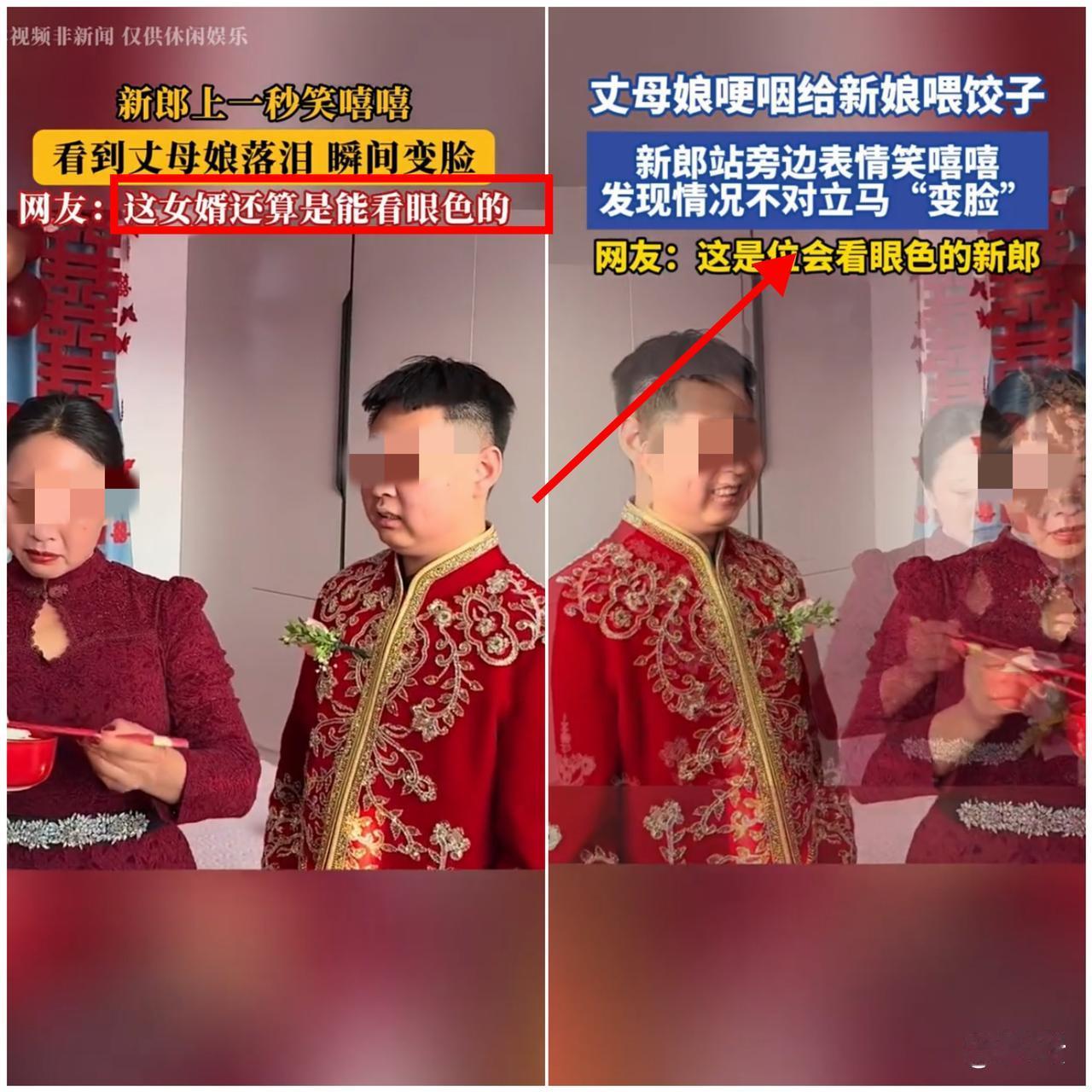 辽宁新郎这波“秒变脸”太圈粉! 双节婚礼上,丈母娘含泪喂新娘饺子,他前一秒还笑开花,见丈母娘掉泪立马收住笑容,这眼力见直接让网友喊“新娘嫁对了”。 别觉得这只是个小举动,背后藏着真本事。 结婚时男方只顾自己欢喜,忽略娘家人不舍的情况太常见,可这位新郎能及时察觉情绪、调整状态,说明他懂共情、会体谅人。 要知道,对丈母娘的情绪上心,本质上是对新娘的重视! 连爱人的家人都放在眼里,以后怎么会亏待老婆? 比起那些婚礼上只顾耍帅、讲场面话的新郎,这种“会看眼色”才是婚姻里的硬实力。 毕竟日子过的是细节,能察觉身边人的情绪,愿意为对方收敛自己的喜悦,这样的人才能把日子过暖。 你身边有这种“高情商”的新郎或伴侣吗? 来评论区说说他们的暖心瞬间~