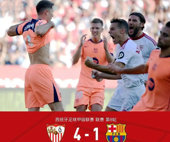 10年来首次战胜巴萨,75年以来首次对巴萨取得4-1大胜,塞维利亚今天要过年了,被巴萨欺负了这么久终于报仇了。