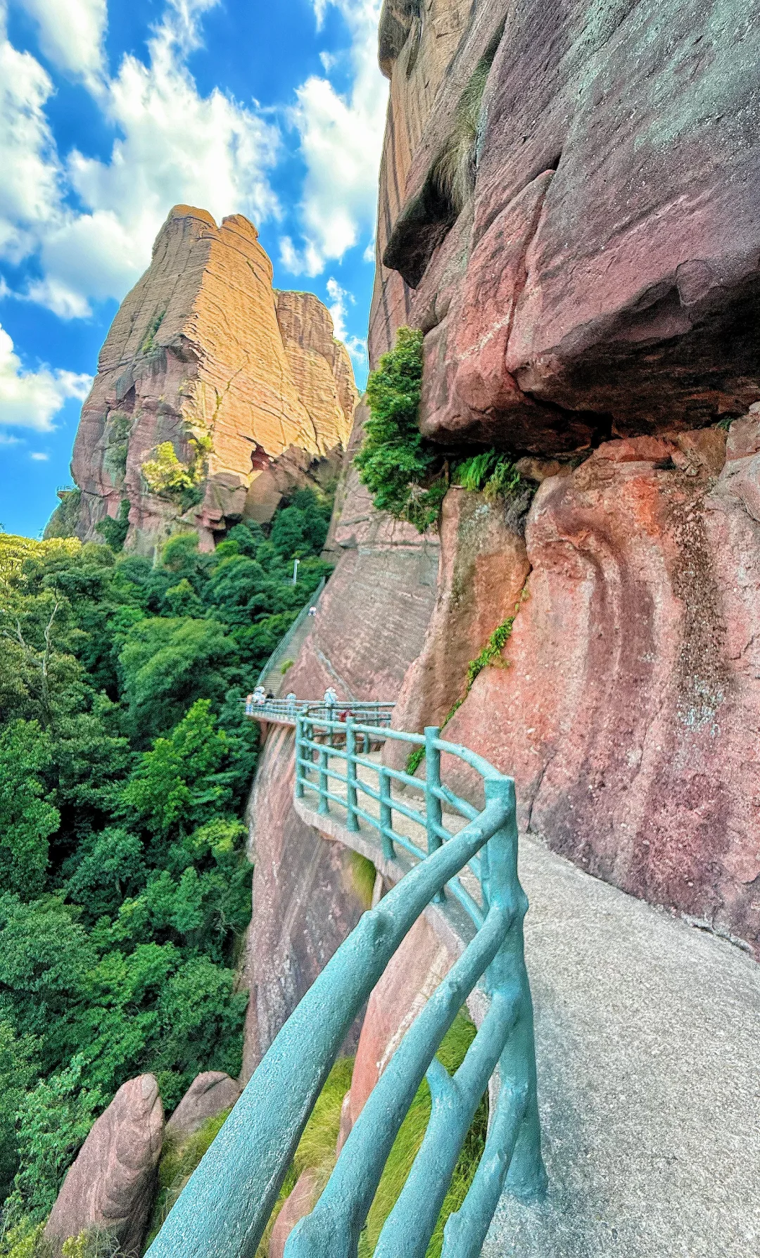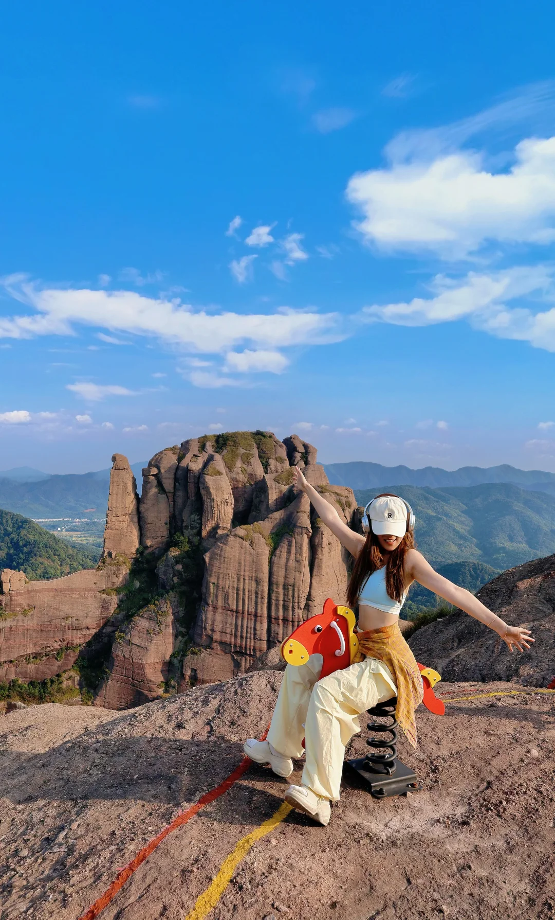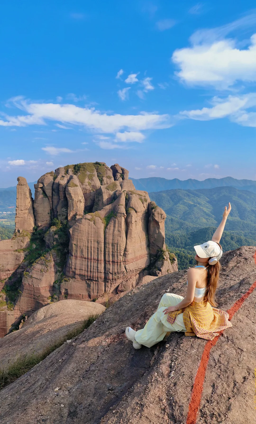 - 姐妹们,赤壁丹霞的概念我第一次这么具像化‼ 不用去大西北也可以看到这么震撼的场景 - 丹霞的色彩会变魔术🤓 清晨是朦胧的粉,正午是浓烈的橙,黄昏又成了醉人的紫,阳光是最好的化妆师🧚🏻‍♀ 望着层层叠叠的山,突然明白:人生的积淀也该这样,每一步都算数,终将铺成属于自己的风景。 上饶龟峰真的太宝藏了,喜欢户外爬山的小伙伴不要错过‼ 世界自然遗产➕地质公园“双冠”丹霞地貌➕绿宝石般的湖,绝不白来🥳 - 📍:弋阳龟峰景区 🚗:抵达至弋阳站(打车20分钟到景区) - ✔推荐两日游玩路线 Day1:抵达景区➖入住酒店➖霞客线➖晚上观夜游演绎 Day2:早上先去绿野仙踪➖桂花园➖好汉坡➖三道口➖金钟峰➖南天柱➖骆驼峰➖龟峰湖 . 必打卡点位: 🟩绿野仙踪:早上八点起来,吃完早点,乘酒店接驳车前往,迷雾森林既视感,一定要穿白色的裙子,怎么拍都很出片啊😇 🟩好汉坡:这里拍照真的很出片,比较有特色的就是楼梯航拍很震撼哦 🟩金钟峰:山顶的摇摇马彩蛋在这里,不要怕累,一定要亲自坐一下这个摇摇马哦~ 🟩骆驼峰:玻璃栈道在这里,真是是考验耐力和勇气的时候 🟩龟峰湖:这里不仅可以坐船,还可以竹筏碧波水上游,体验感满满 🟩夜游:晚上有打铁花➕山水实景演艺➕崖壁3D光影秀等精彩演出 夜游时间:19:00-20:30 打铁花、火壶表演:19:30 真人演艺:20:00 - ✔️住宿: 入住花间岭-碧水丹心,民国风的装修风格,推开窗就可以看见龟峰