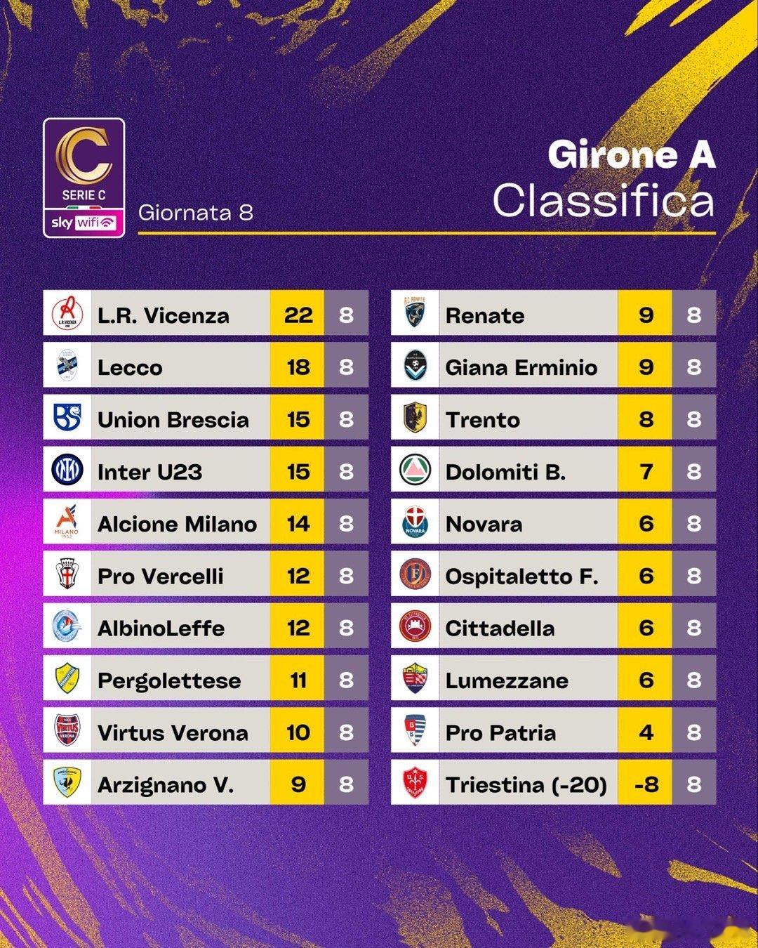 意丙联赛A组目前的积分榜如下国际米兰国际米兰4比1克雷莫内塞热点解读