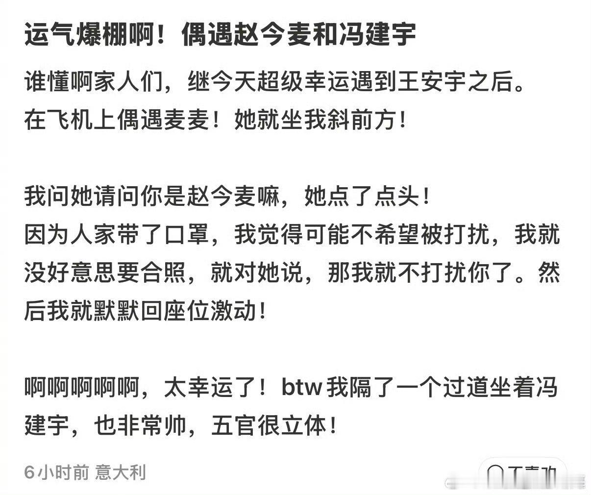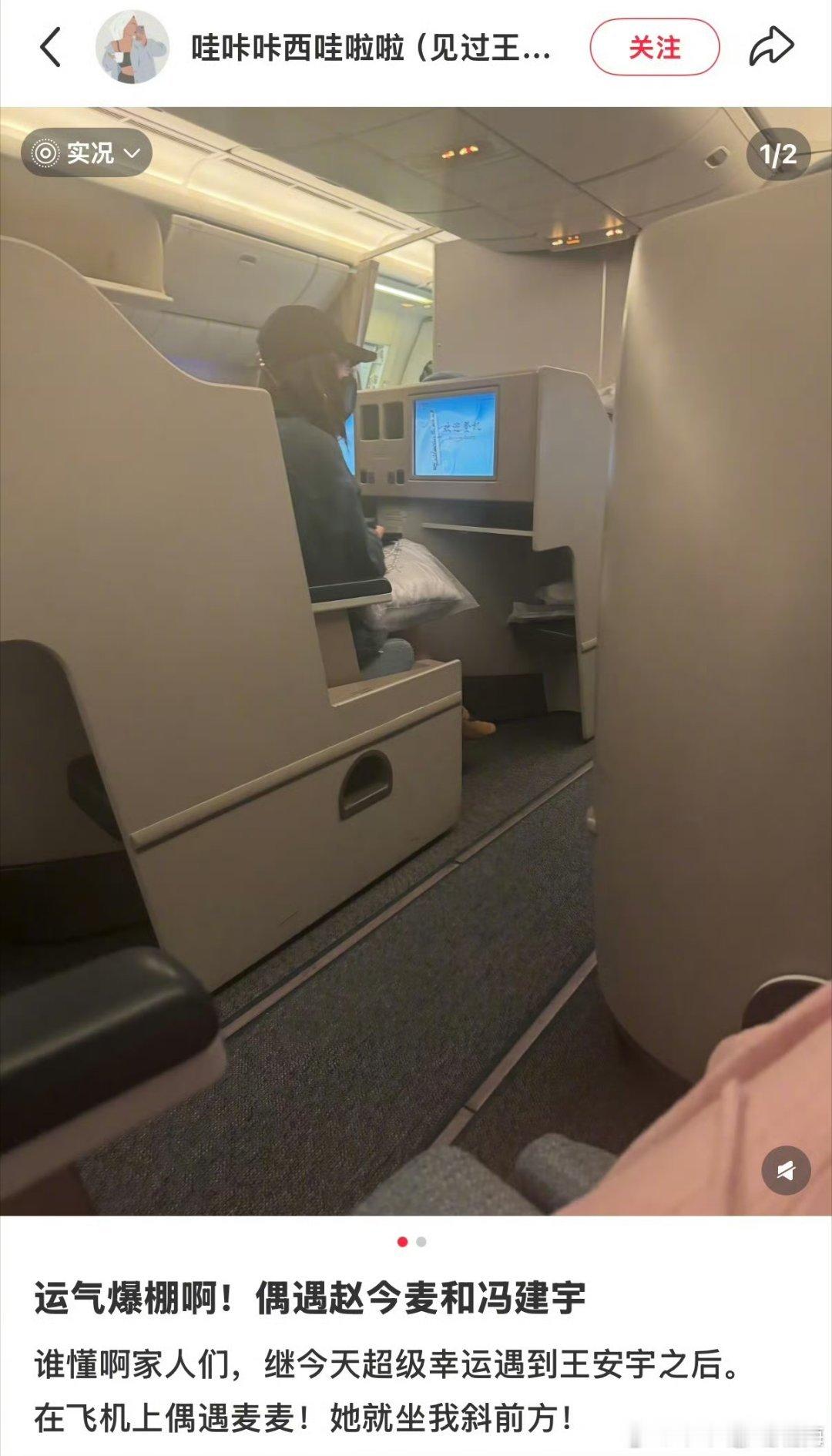 网友坐飞机偶遇赵今麦冯建宇王安宇