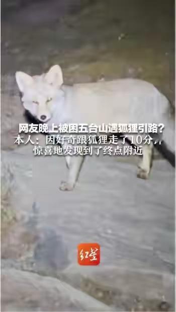 网友称夜晚被困五台山遇狐狸引路,“因好奇跟着走了10分钟,到了终点附近”;专家:可能碰巧同路,狐狸回头是讨食或防备 网友评论: 狐狸通人性,它不像人没啥坏心眼儿。你对它好它会感恩,这也许就是人们喜欢宠物的原因吧。 为什么肯定是恰巧?十分钟的路决不可能是恰巧,是十分确定的带路。 让我想起了一个成语:狐假虎威。魅族这是“狐假人威”。狐狸其实是在借人类的光环,想趁机靠近人类住所,以便寻找食物罢了。 动物是通人性的,这就缘份,一定要善待