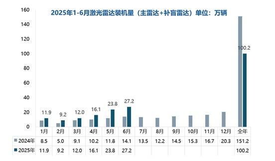 盖世汽车研究院报告显示,2024年国内激光雷达装机量首次突破150万颗,同比激增179.7%;2025年上半年即达100.2万颗,同比再增71%,全年有望冲击250万颗。禾赛科技、速腾聚创、华为等自主厂商已牢牢占据市场主导,激光雷达的“选配”身份正被“标配”全面取代,其安全价值也获得消费者广泛认同。