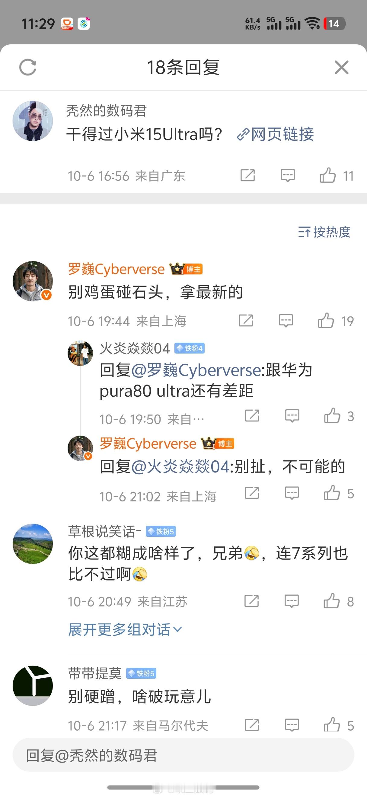 荣耀罗巍:小米15Ultra是鸡蛋碰石头,跟华为Pura80Ultra不可能有差距[二哈]