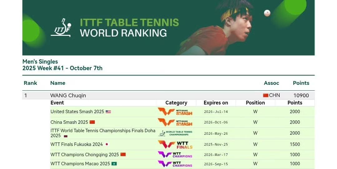 整整一年,王楚钦一直追赶太阳奔跑,也成了万分猛男 2024年10月8日,孙颖莎凭借中国大满贯女单冠军收获2000积分,以10800总积分成为首位积分破万的女运动员。 整整时隔一年,2025年10月7日,王楚钦同样凭借中国大满贯男单冠军,收获2000积分,以总积分10900成为首位积分破万的男运动员。 啥也不说了,就两个字:般配!又可以肩并肩一起向前跑啦! #万能生活指南#