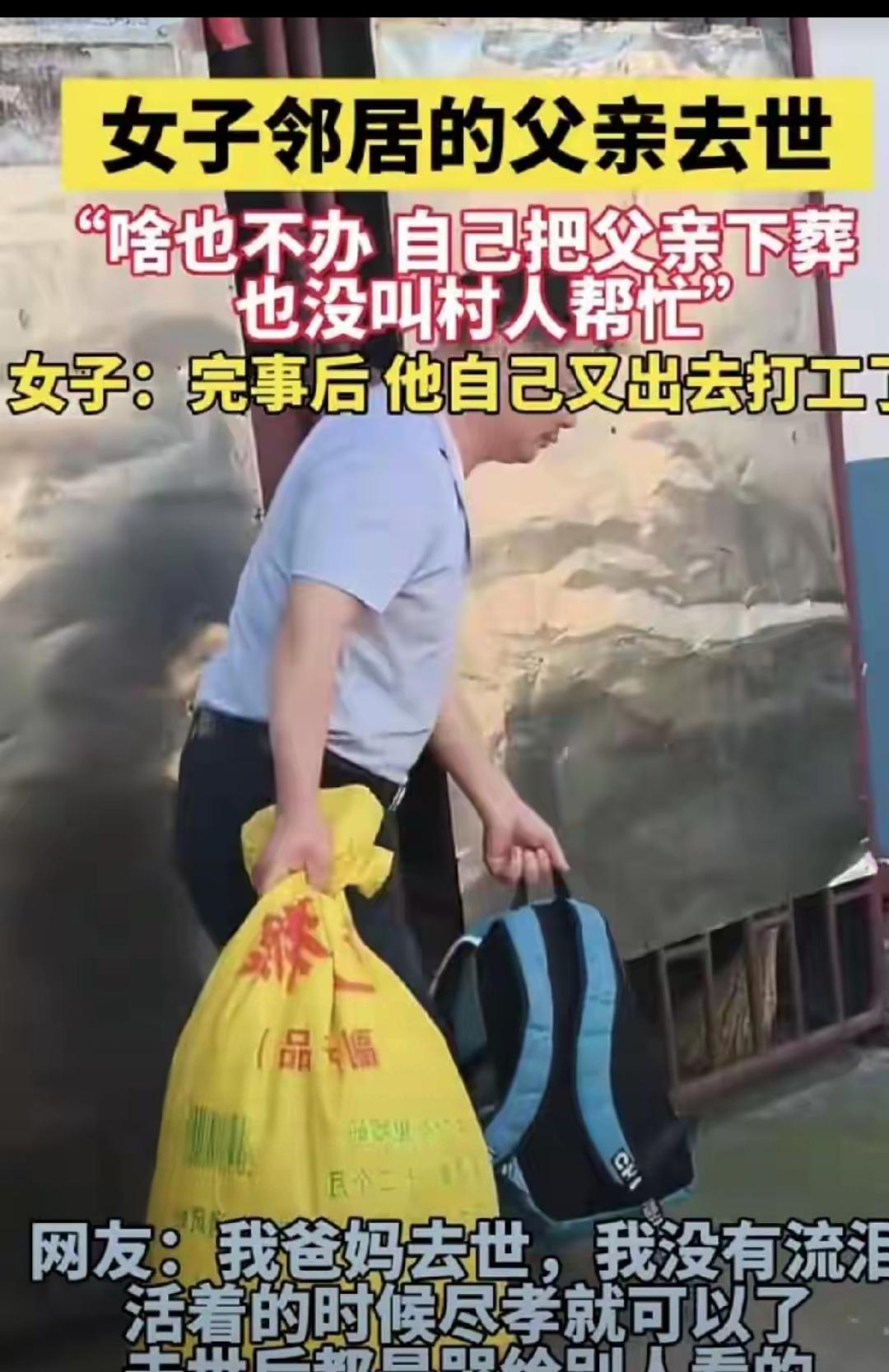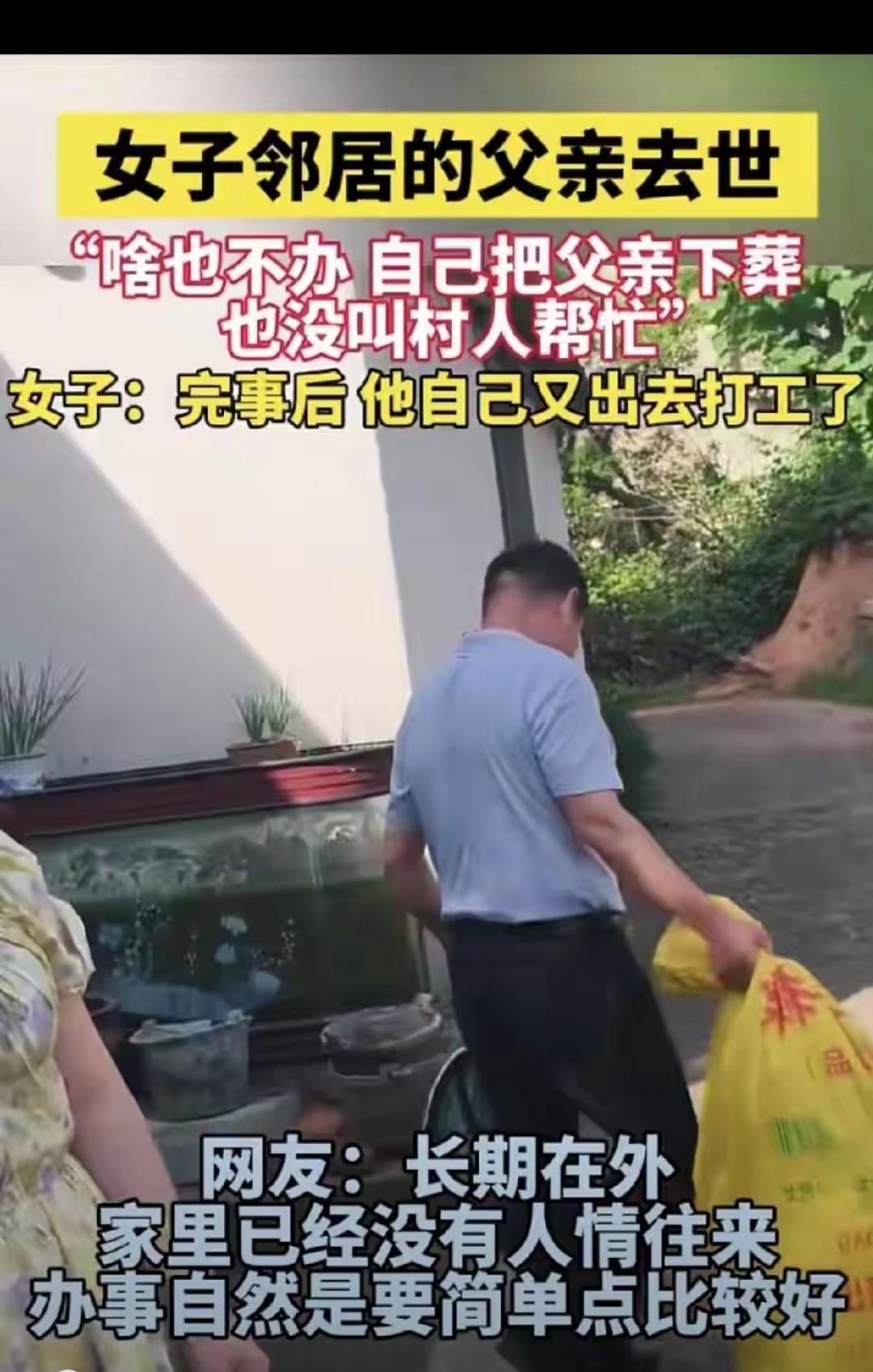 湖北男子独自下葬父亲的事,真该让那些拼面子办丧事的人好好看看!这哪是绝情,明明是戳破了“厚葬=孝顺”的假象。 他在武汉打工赚得不多,既要养自己,还得给老家生病的父亲寄药钱。按当地规矩办丧事得好几万,这笔钱对他来说就是天文数字。更现实的是,村里年轻人大多在外,找人帮忙未必有人应,还得欠一堆难还的人情。 生前按时寄钱、常打电话关心,这比死后摆几十桌酒席实在多了。现在汕头、普定这些地方都在推“厚养薄葬”,海葬、公益公墓越来越流行,不就是想让丧事回归本心吗? 真正的孝心从不在仪式上。你觉得办丧事该讲排场还是重真心?来聊聊你的看法~