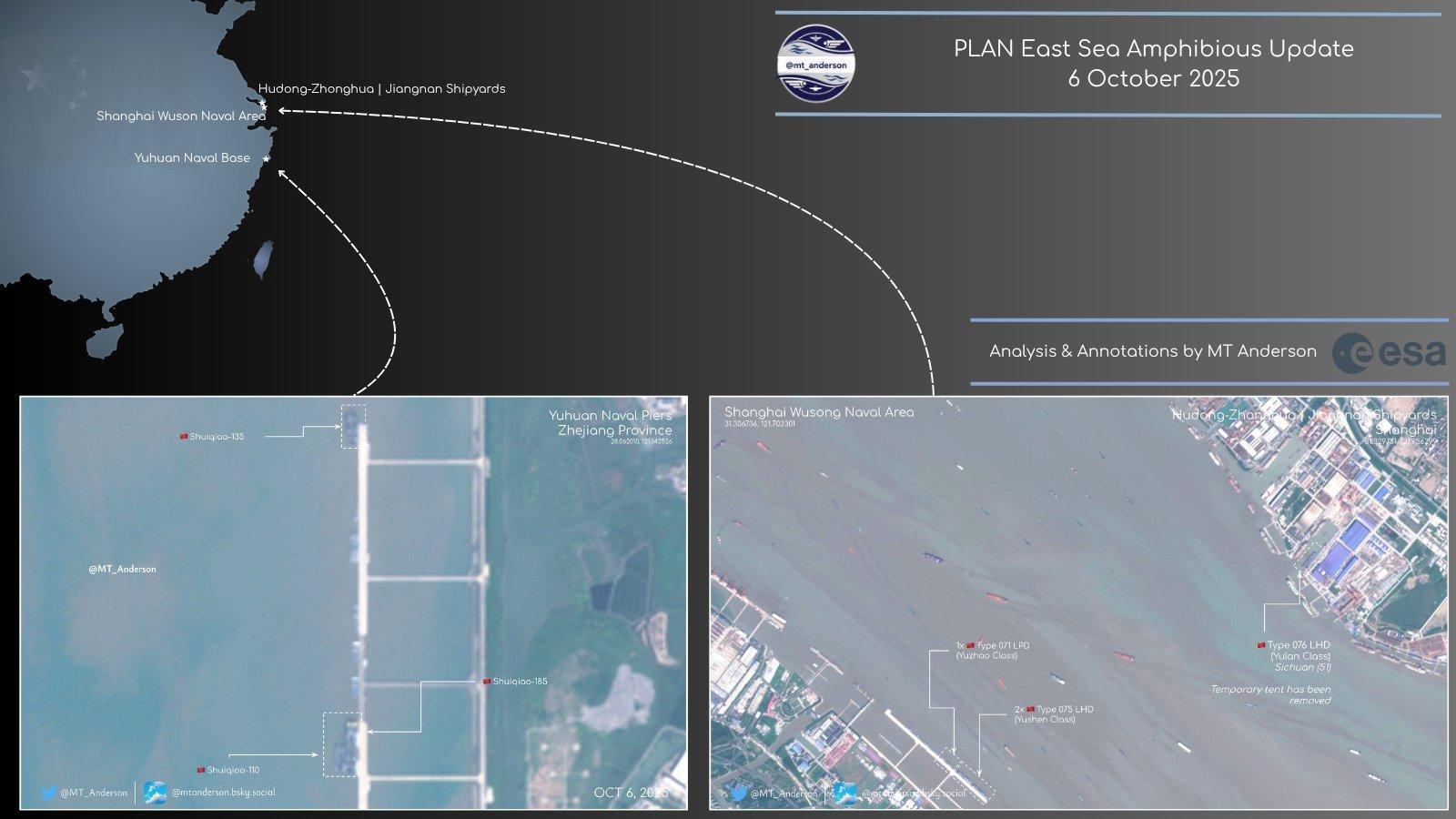 停在黄浦江两岸的东大两栖舰队,一边是2x075+1x071,另一边是在建的076 [666]