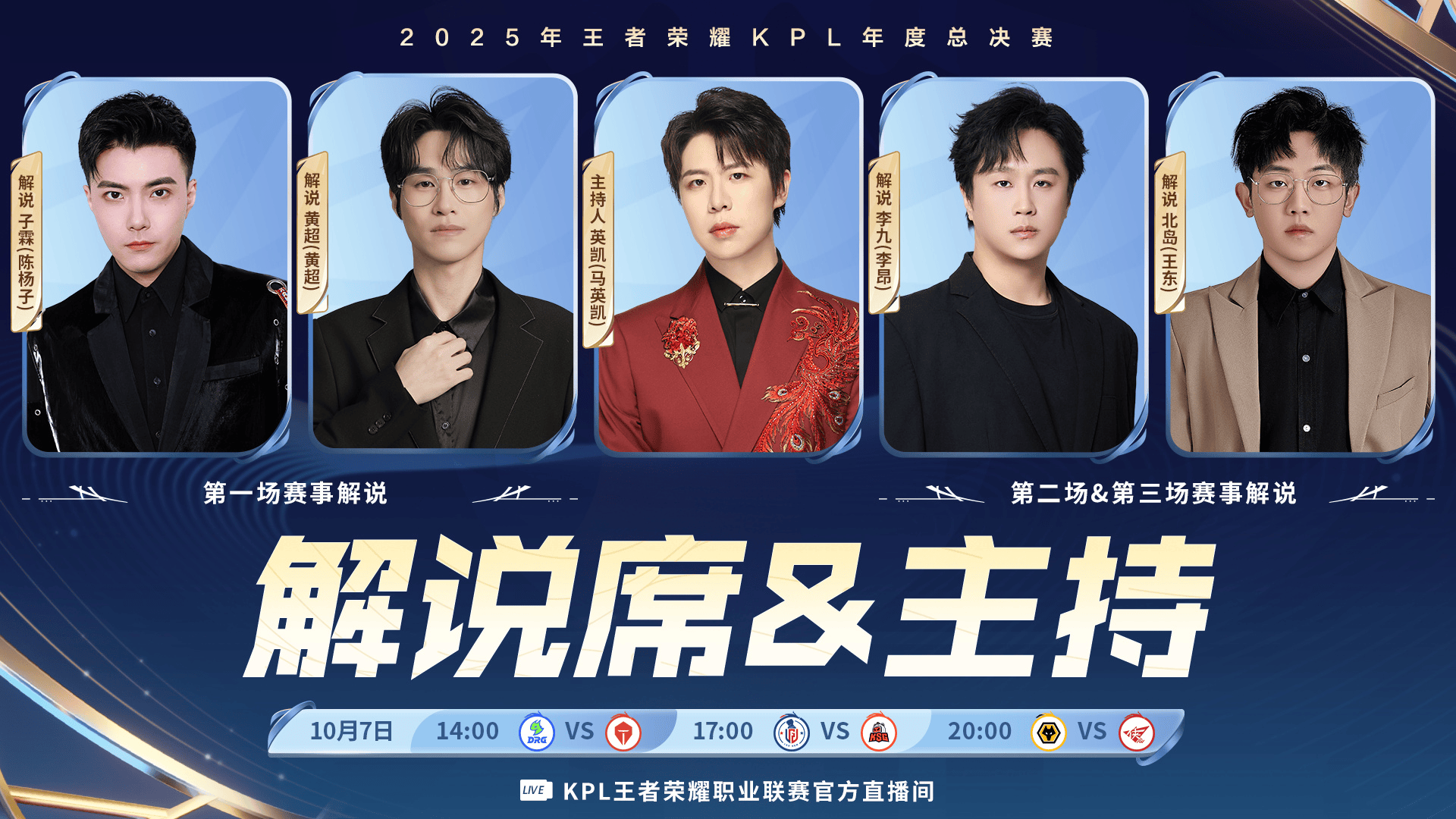 解说席&主持人:子霖(陈杨子)、黄超(黄超)、英凯(马英凯)、李九(李昂)、北岛(王东)