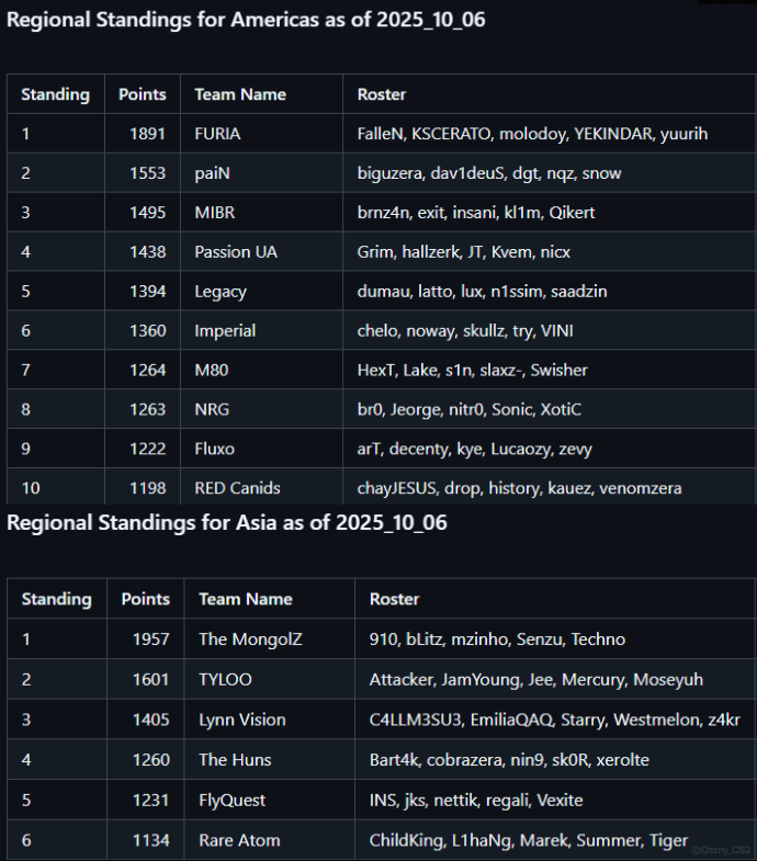 虎扑10月07日讯随着V社官方公布10月VRS排名及各队阵容核心名单,FaZe的Twistzz、Spirit的tN1R以及GamerLegion的hypex选手因为并没有随新队伍在10月6日前打满五场比赛(EPLS22正赛阶段的比赛不算在内),三人都将确定无缘个人签名贴纸,rain、zont1x与Kursy仍将获得贴纸。其中hypex选手为职业生涯首次参加Major。