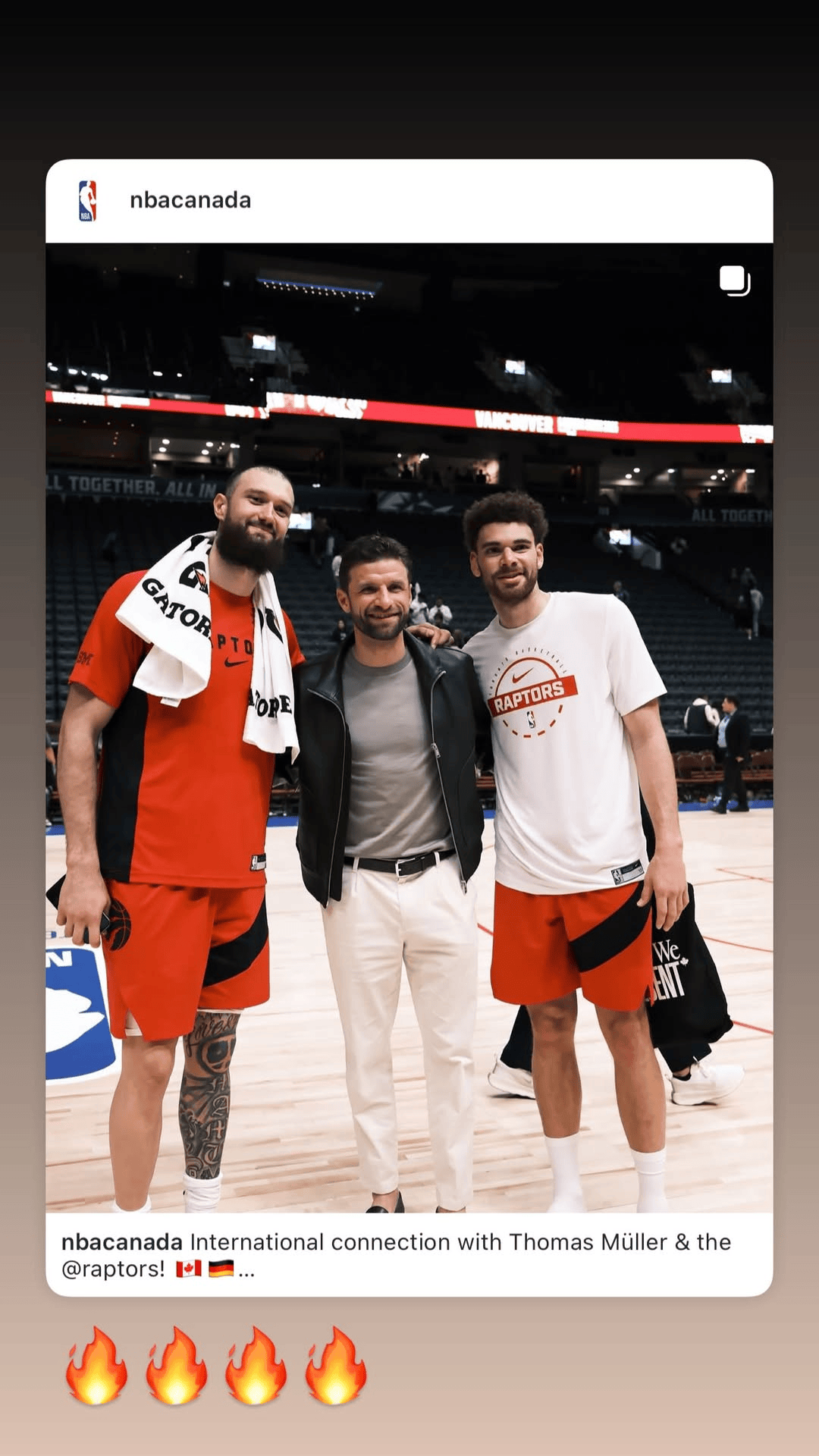 虎扑10月07日讯猛龙球员桑德罗-马穆凯拉什维利更新社交媒体,晒出和队友贾米森-巴特尔一同与足球名宿托马斯-穆勒的合影与球迷分享。