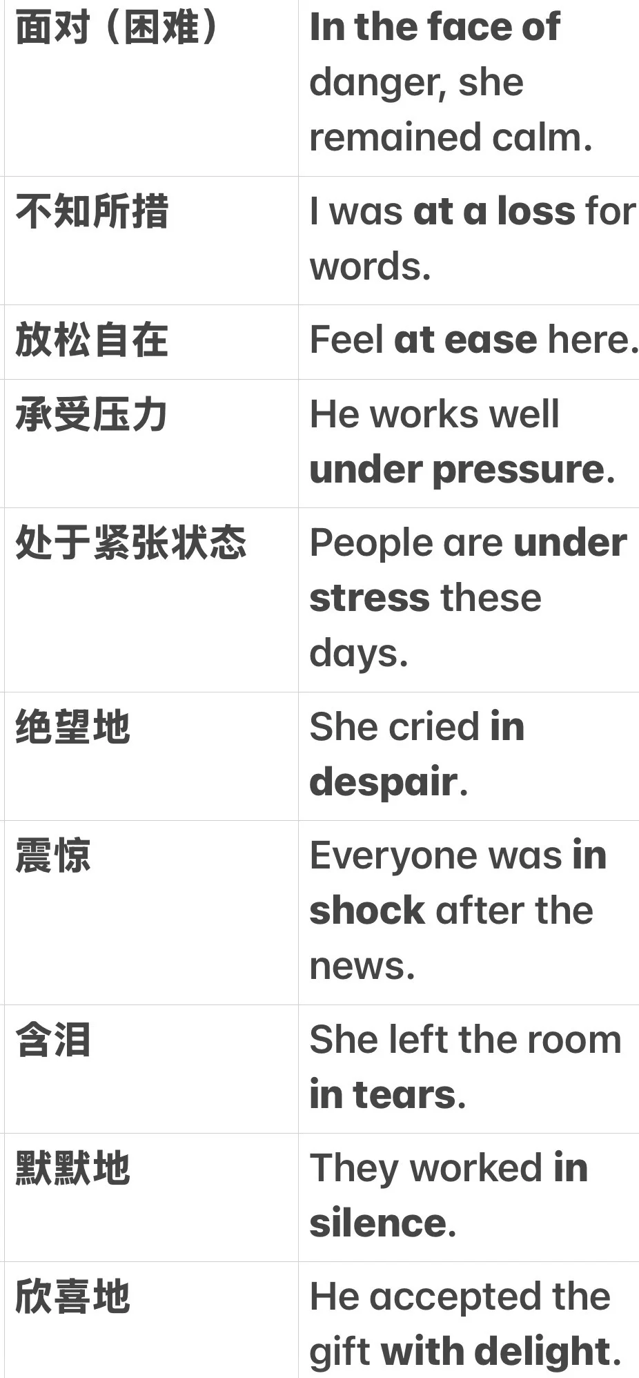 in silence 默默地 They worked in silence.