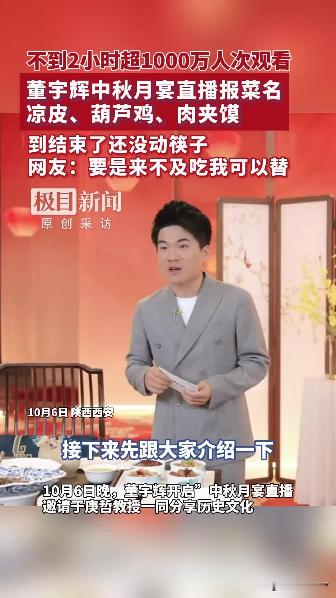 董宇辉这几日参与了与辉同行在西安举办的中秋晚会,央视的中秋晚会同日举行。虽然没有具体的数据,但是从观看人数来看,董宇辉的晚会短时间内观看人数就超过了700万,这个数据已经算是相当不错了。 不过也有网友表示,董宇辉以后怕是没办法再出头了,因为与央视的中秋晚会同日举行,谁知道董宇辉这个晚会会不会封杀董宇辉呢?