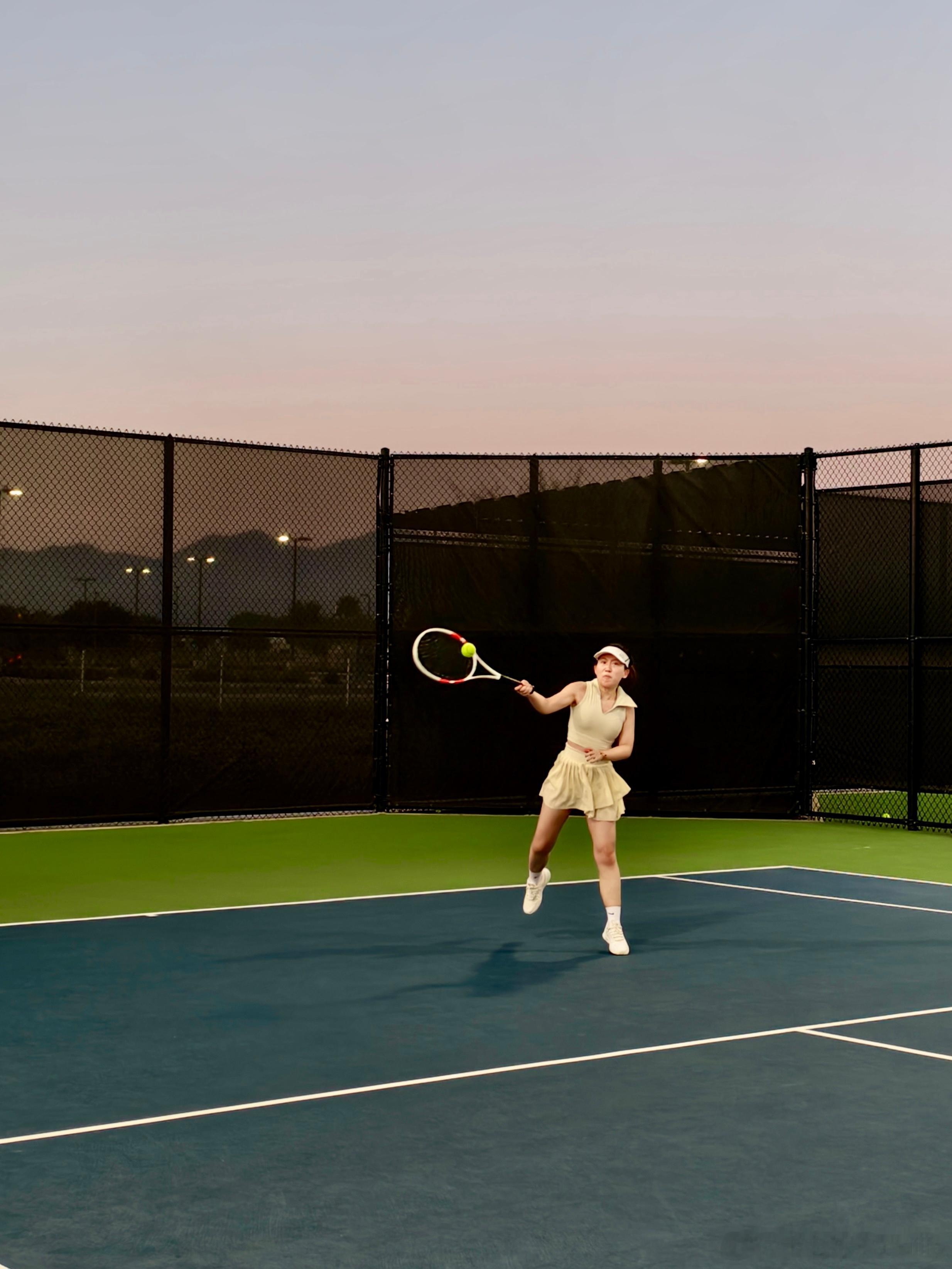 🎾带着球拍走世界的梦想又完成了一笔。日落时分打球,背后的群山太美了。