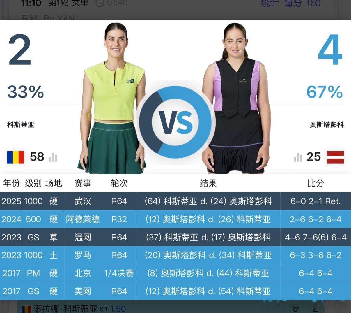 🇱🇻奥斯塔彭科0-6/1-2🇷🇴科斯蒂亚时