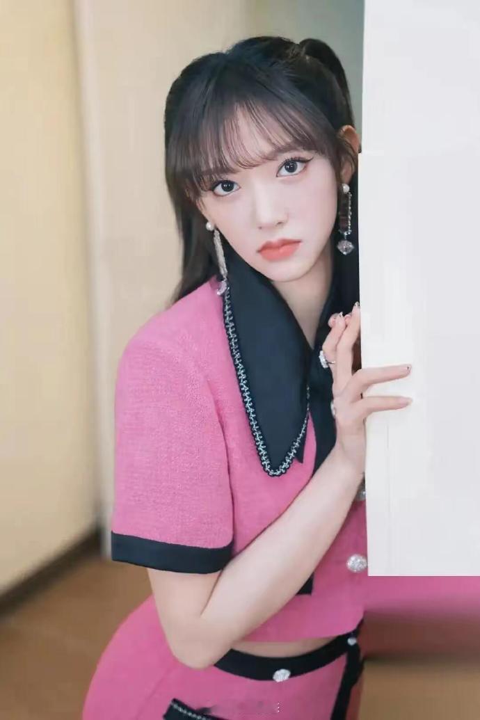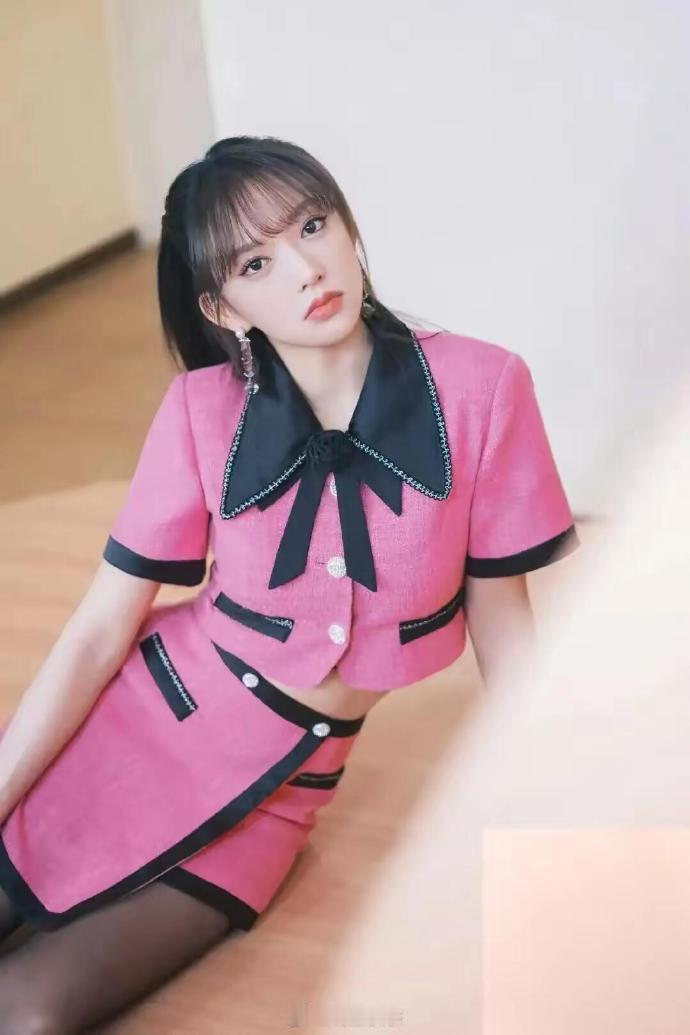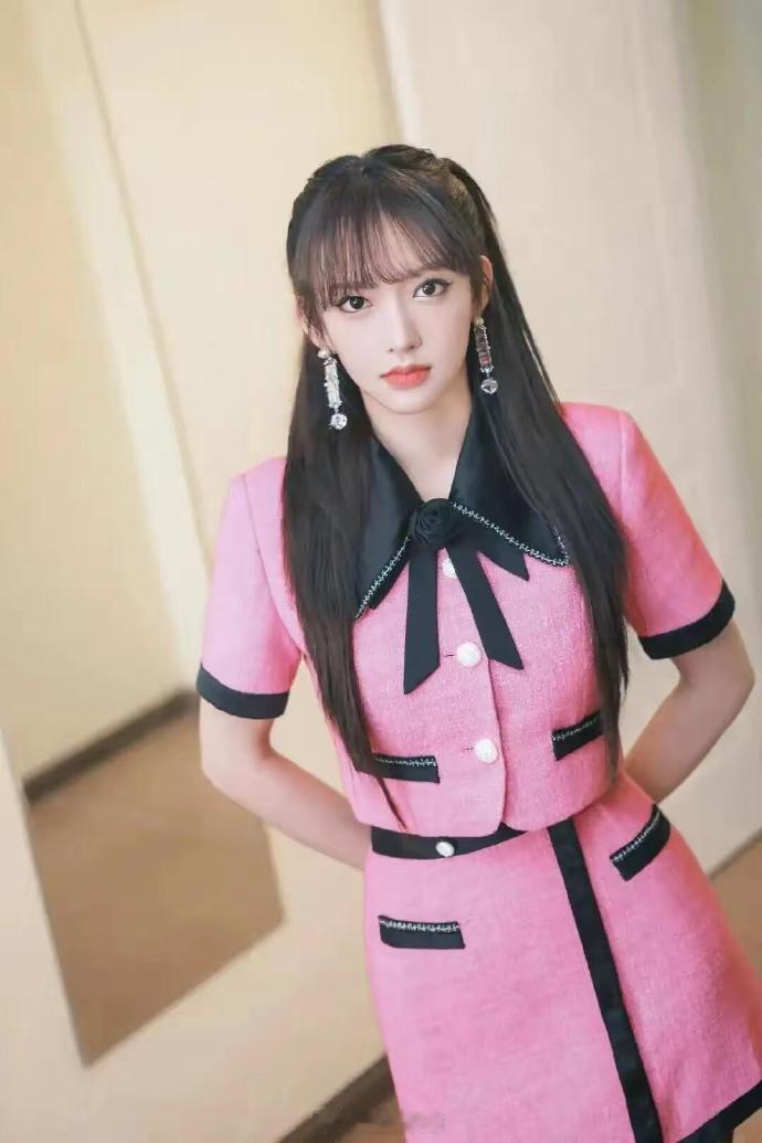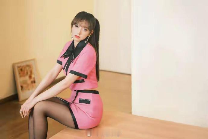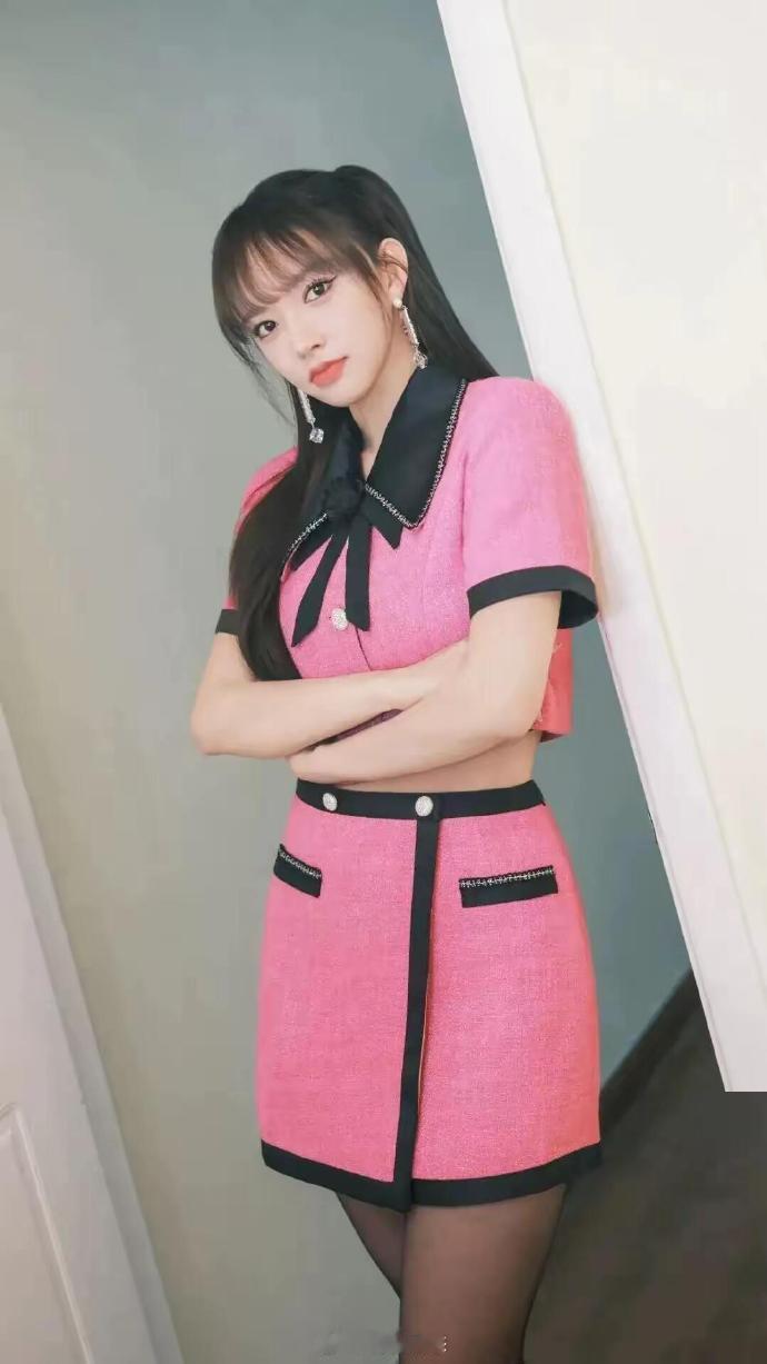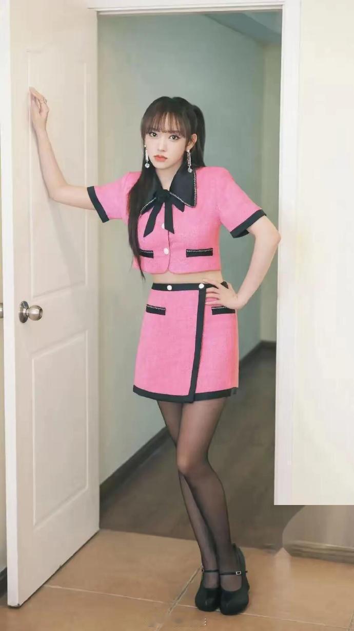程潇粉色短裙配黑丝,又纯又欲,太美了……