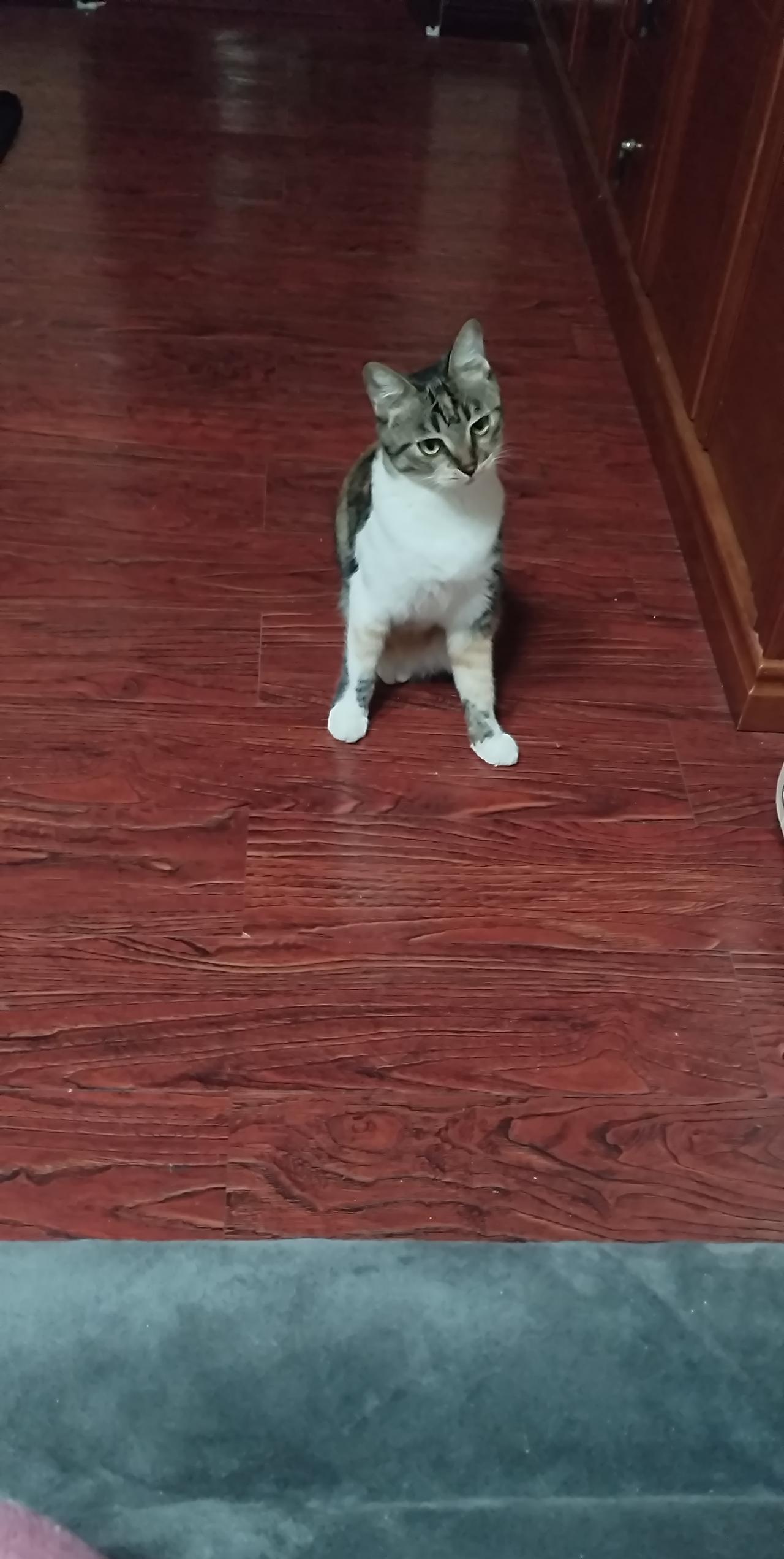 刚刚把我吓安逸了,我家猫猫一直蹲在我傍边喵喵叫,我没理他,因为猫碗里有猫粮它饿了