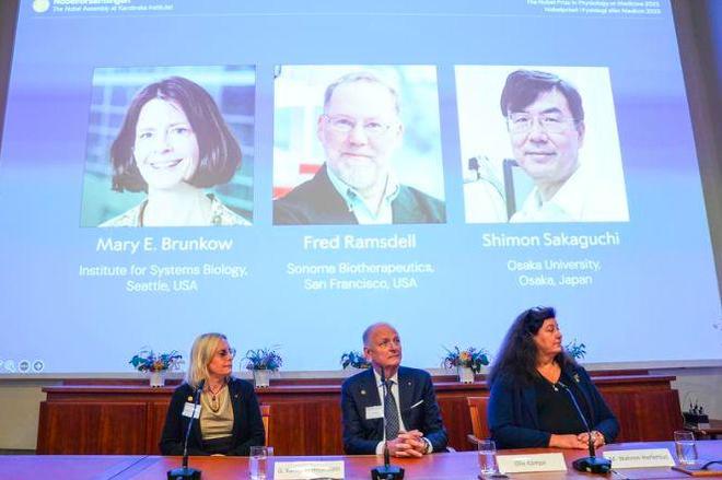 当地时间10月6日,瑞典卡罗琳医学院宣布,将2025年诺贝尔生理学或医学奖授予科学家玛丽·E·布伦科(MaryE.Brunkow)、弗雷德·拉姆斯德尔(FredRamsdell)和坂口志文(ShimonSakaguchi)。