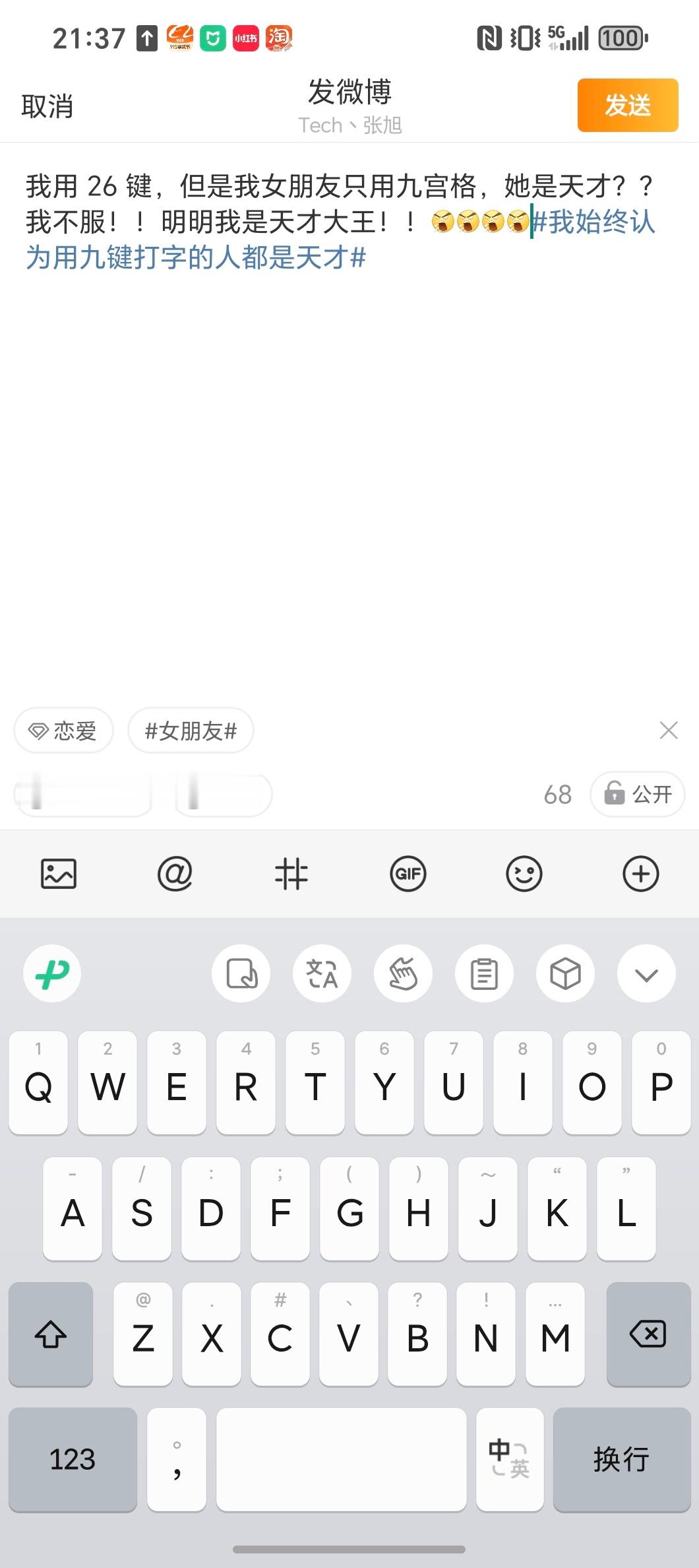 我用 26 键,但是我女朋友只用九宫格,她是天才??我不服!!明明我是天才大王!![怒骂][怒骂][怒骂][怒骂]我始终认为用九键打字的人都是天才