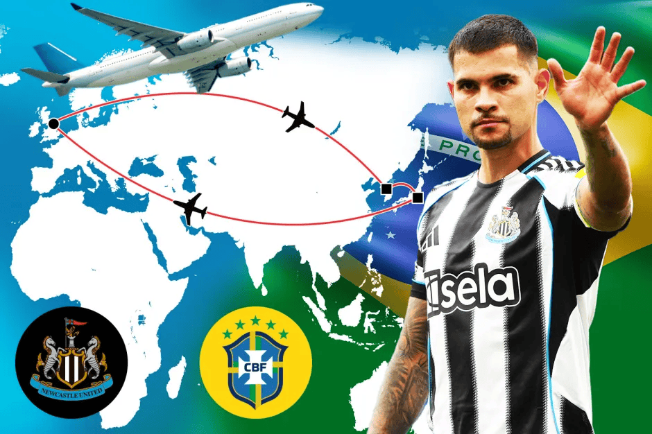 虎扑10月08日讯《太阳报》消息,纽卡斯尔联双星布鲁诺-吉马良斯和乔林顿在国际比赛日期间飞往韩国的途中遭遇了一场旅行噩梦。