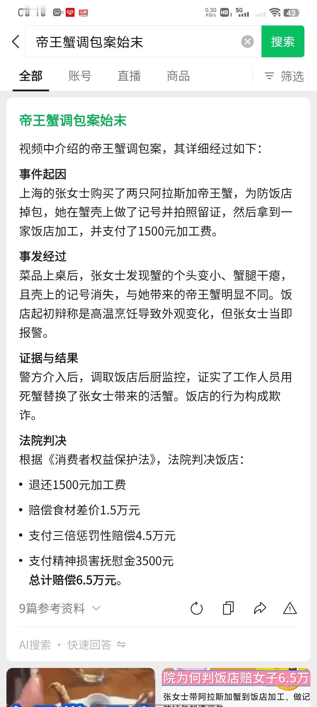 贪心酿成的欺诈案! 上海女子张女士自带两只帝王蟹让饭店加工,并给加工费1500元