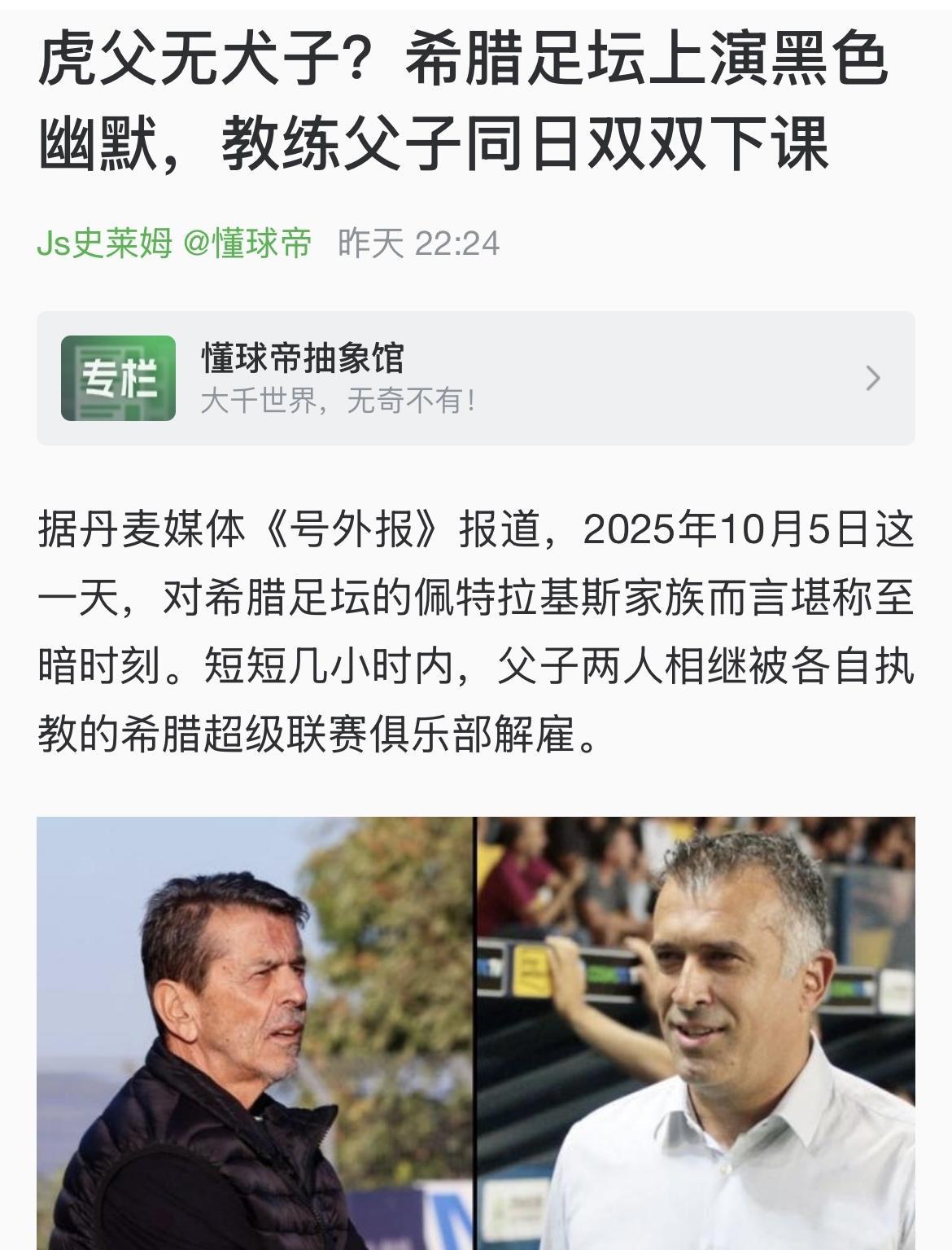 昔有希腊神话,今有希腊笑话;短短几小时内,足坛的佩特拉基斯父子两人相继被各自执教