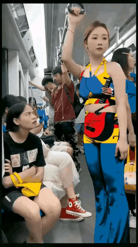 明目张胆地表达自己情绪的第一人!地铁上,一女子穿了一件奇奇怪怪的衣服,坐在一旁的