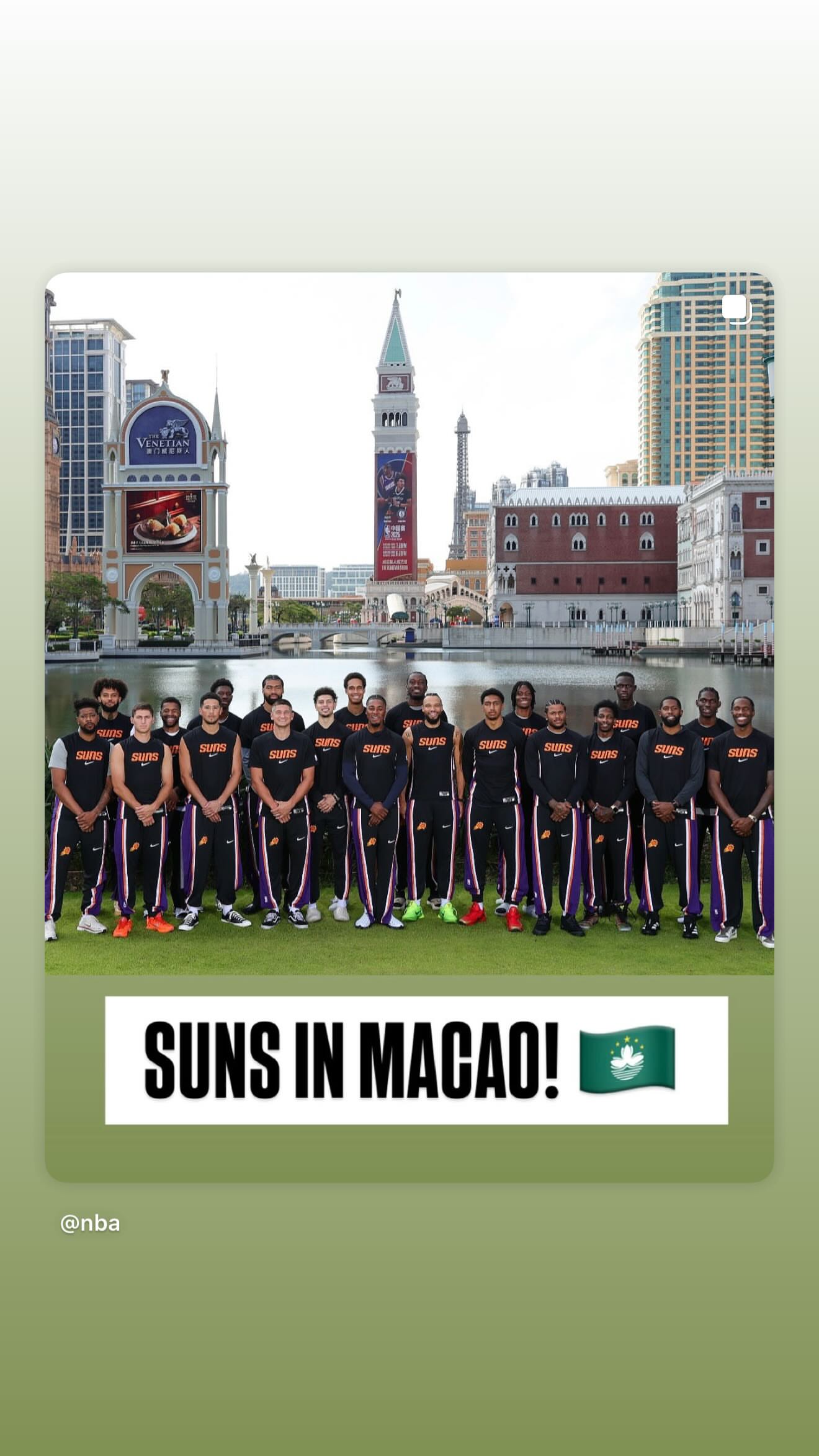 太阳人在澳门!NBA官方晒太阳全队在澳门的大合影照片