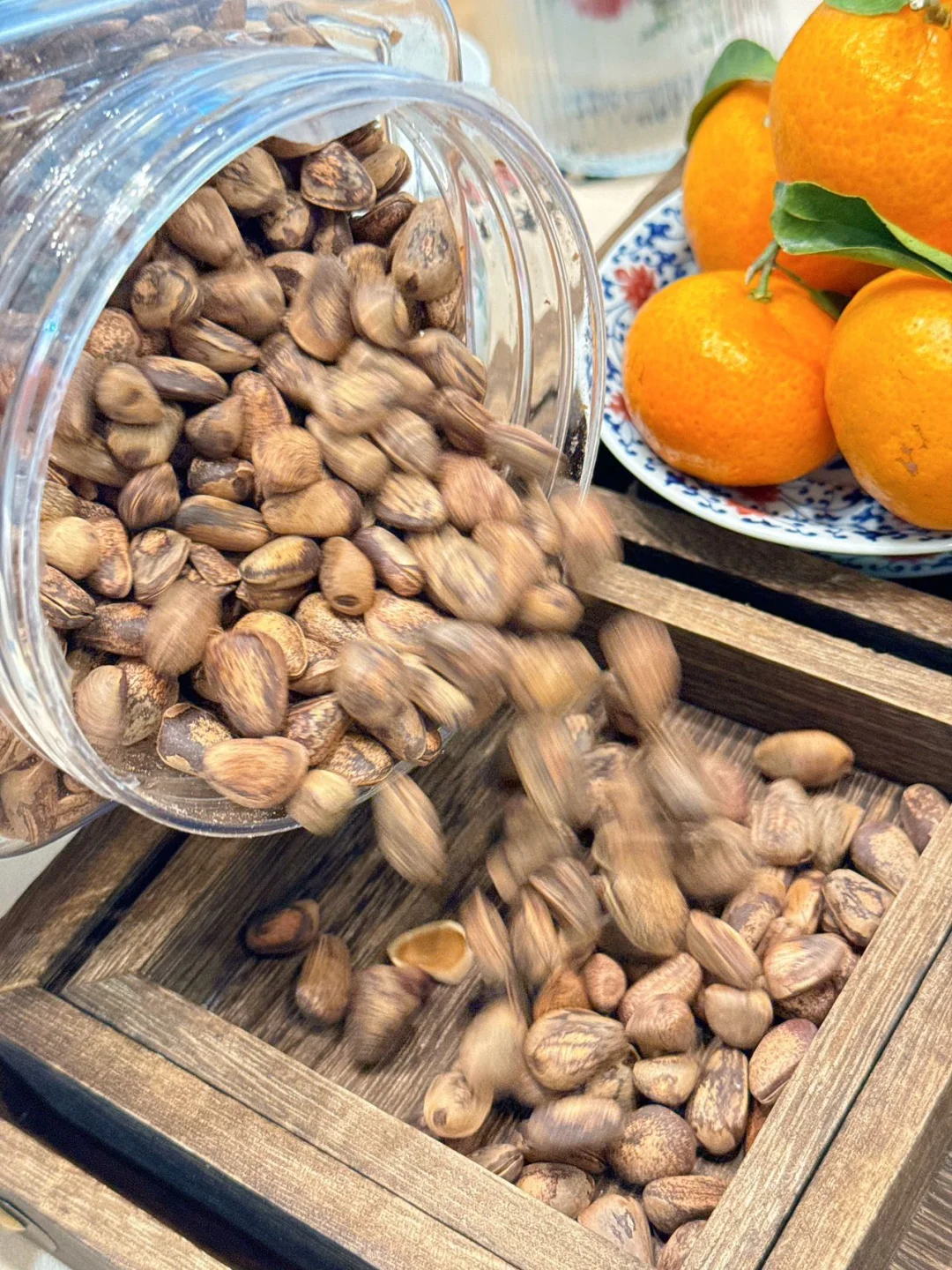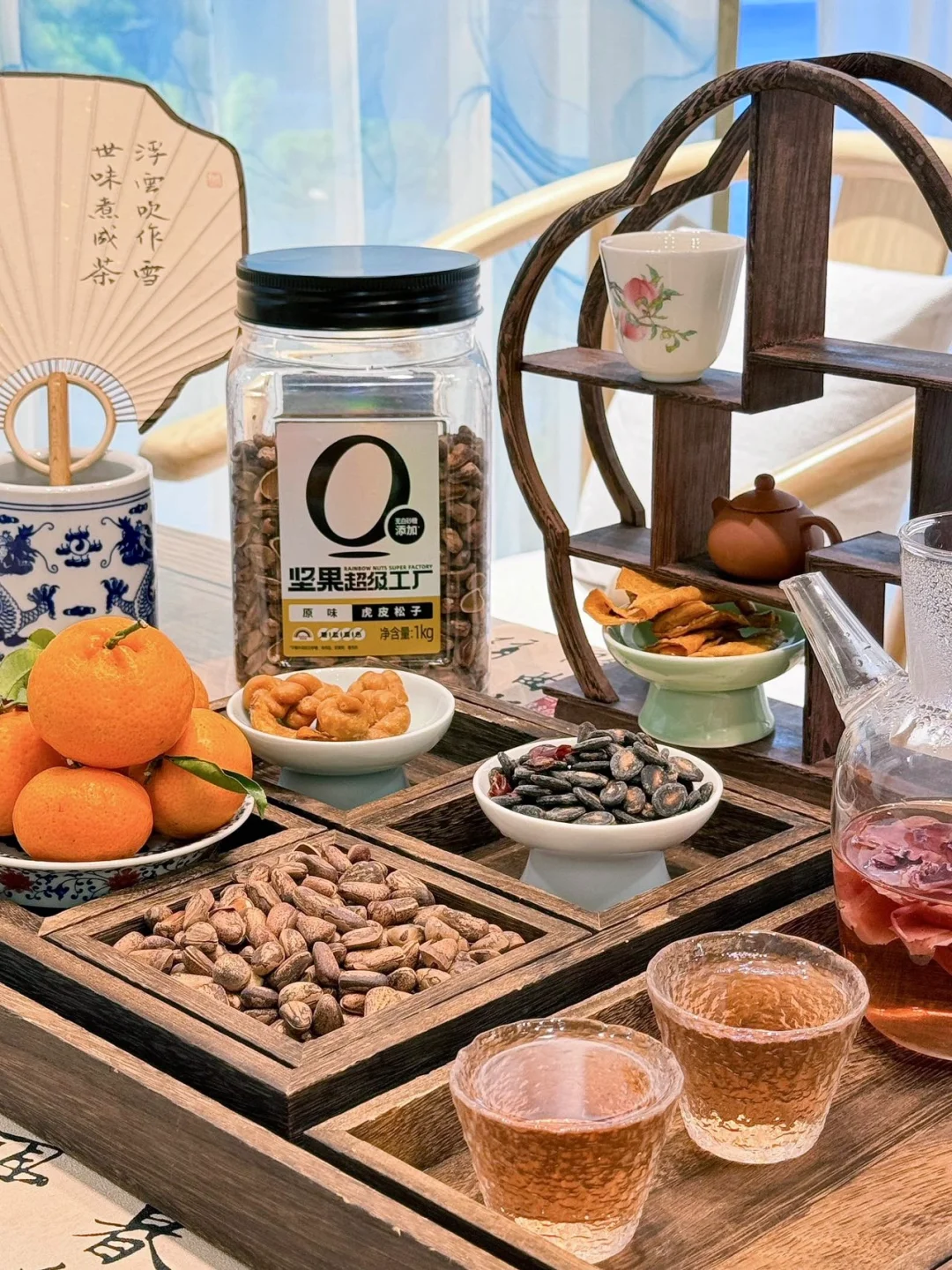 吃点松子!水果啥的!再喝杯热乎乎的茶!