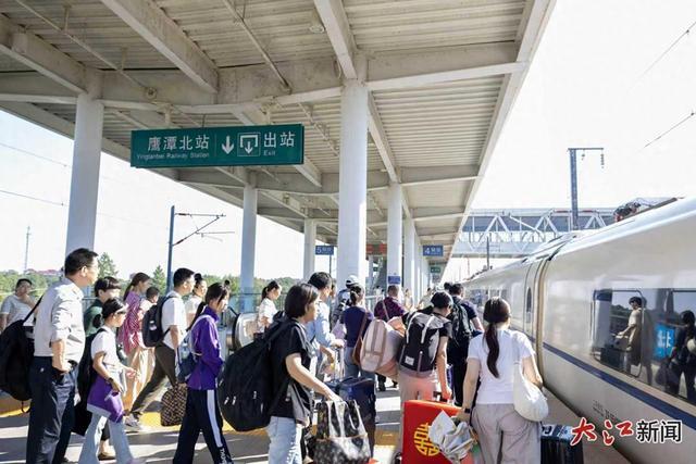 鹰潭北站迎来返程客流高峰,旅客正在上下车。(舒文彬摄)
