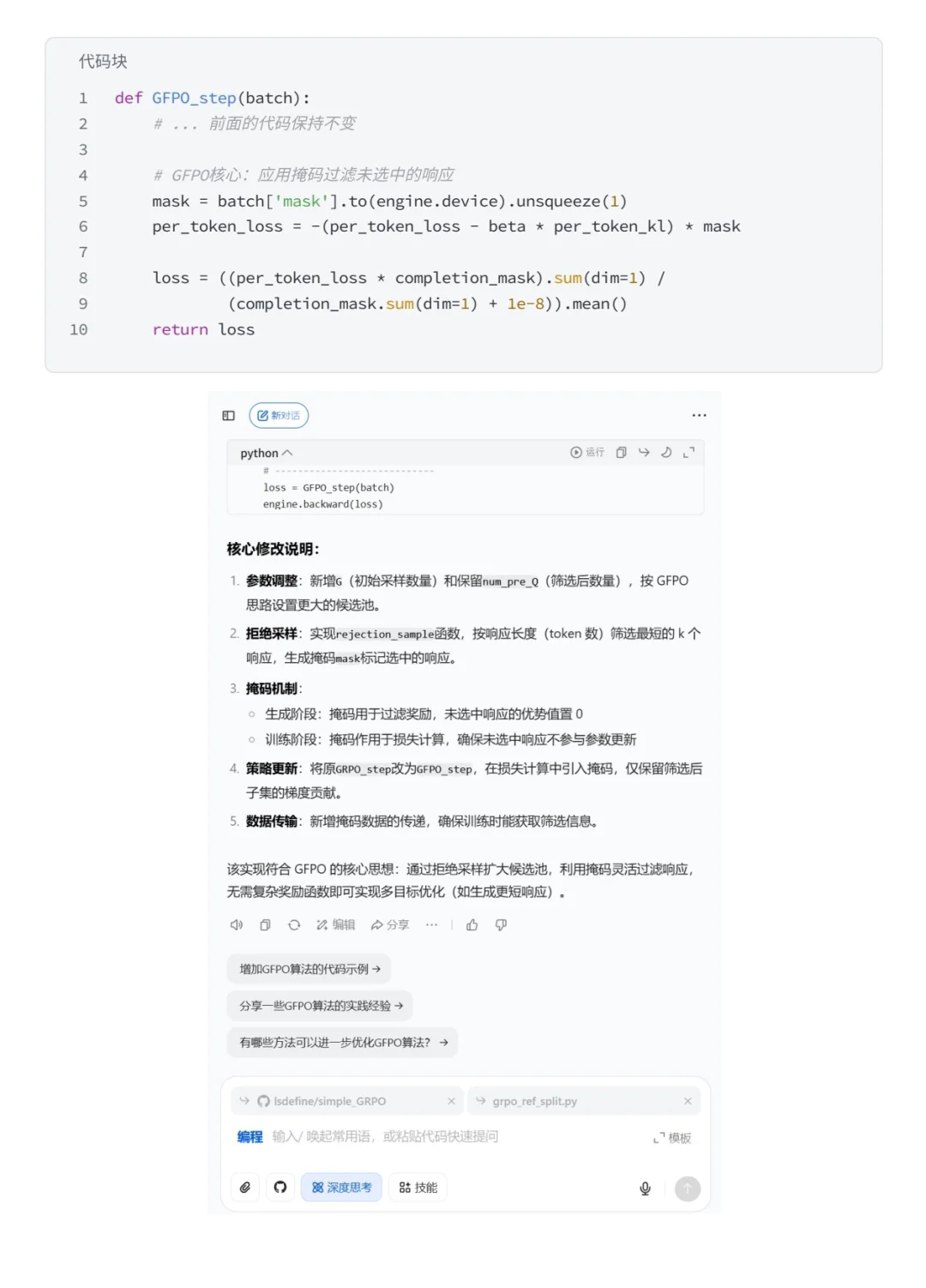 对我来说,这次实践最大的收获就是熟悉了 GFPO 背后的设计思路,以及在小规模实验里感受到AI工具辅助开发的便利性。整体而言,这是一次比较简单但有价值的学习型实验。