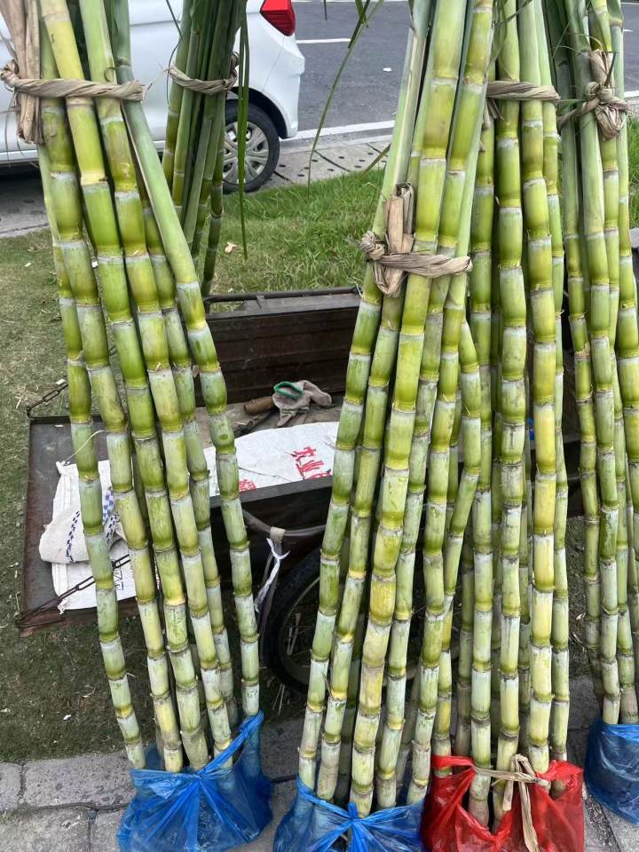 这两天去临平的红丰农贸市场,天气小姐姐也发现,甘蔗摊是越摆越多了,而且除了海南甘蔗,浙江江山的甘蔗也已上市,浙江的便宜些,紫皮的15元一根,青皮的18元一根,海南的每根都要贵上几块钱,个头都很大,长得像竹竿一样。