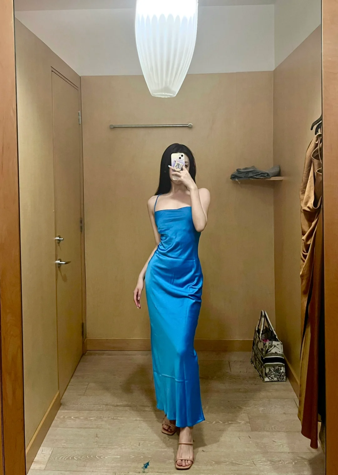 p2的蓝裙子叫“Sydney” 背后是拉绳设计无拉链 入的是xxs(后背镂空款式偏大)同款的黄色也很惊艳大家可以官网看看