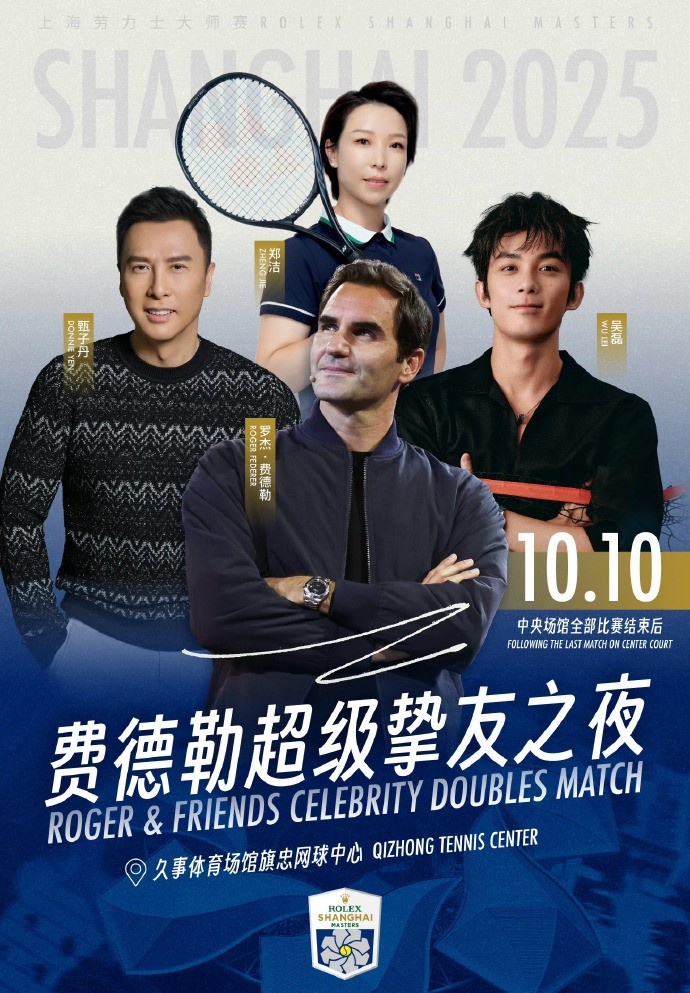 10月10日晚间,费德勒超级挚友之夜将再次在上海大师赛上演,费德勒携手郑洁、吴磊和甄子丹奉献网球表演赛,预计他将搭档甄子丹迎战郑洁/吴磊的组合。