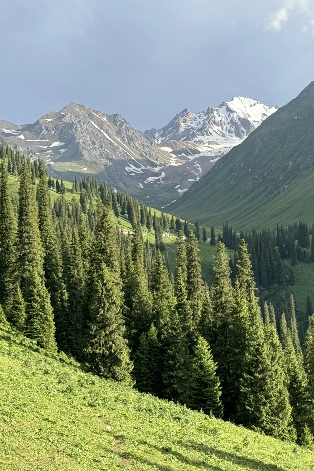 远处天山如黛,云絮在蓝天肆意舒展,每一口呼吸都是青草与松针的气息,每一次眺望都是自然写给心灵的温柔情书,在这里,日子慢成了草原上的风,自由得不像话~