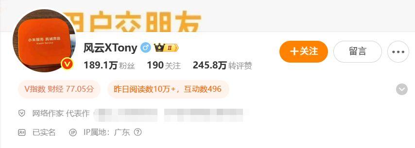 认证信息显示,该博主为网络作家,拥有189.1万粉丝。