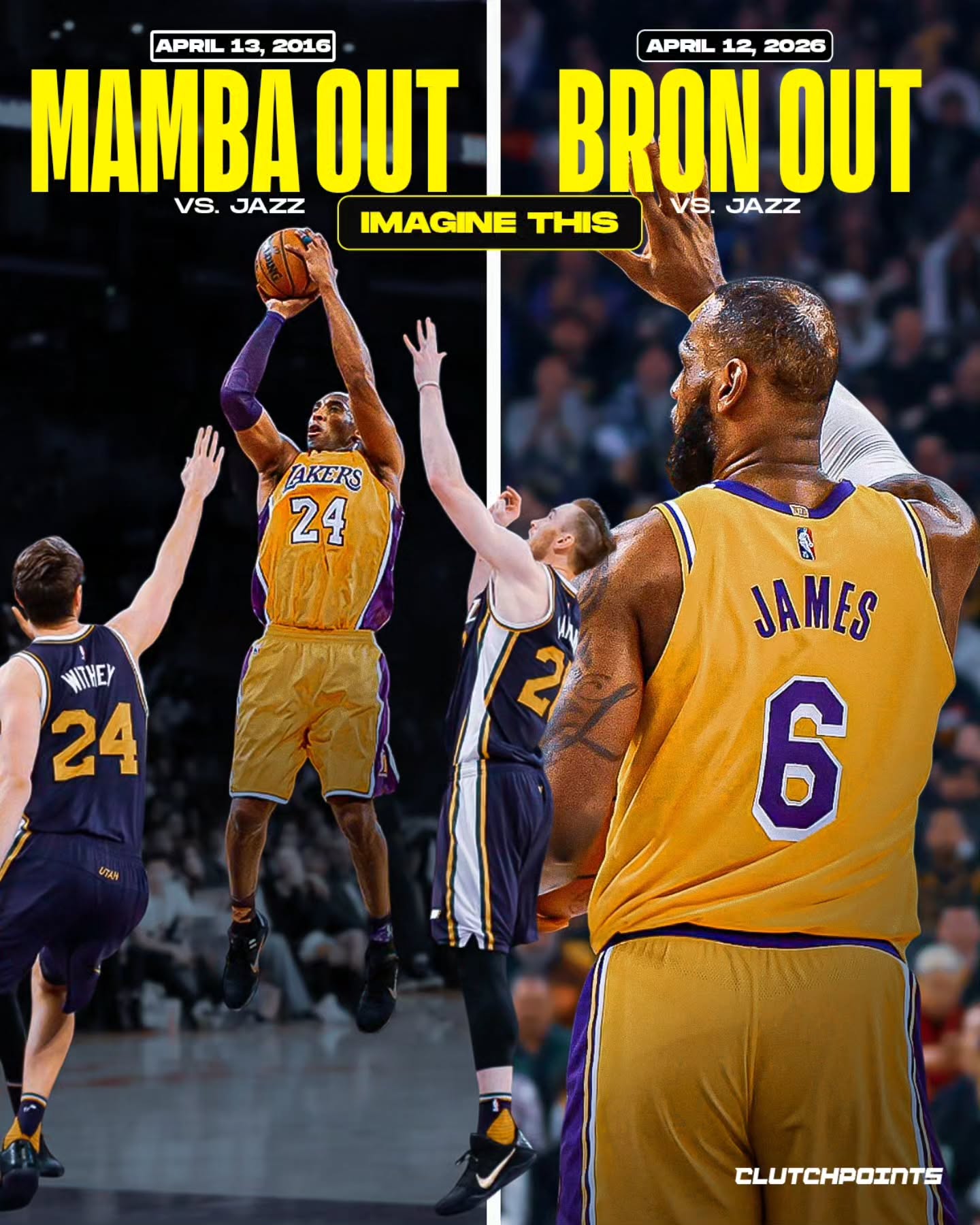 这恰恰是科比-布莱恩特十年前(2016年4月13日)完成那场难忘告别战的同一支球队。那晚科比砍下60分,我们有幸见证了传奇的"曼巴谢幕"演讲。