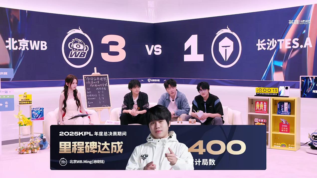 虎扑10月09日讯2025KPL年度总决赛第10日第2场,恭喜北京WB.Ming(池晓铭)达成累计局数400局里程碑!