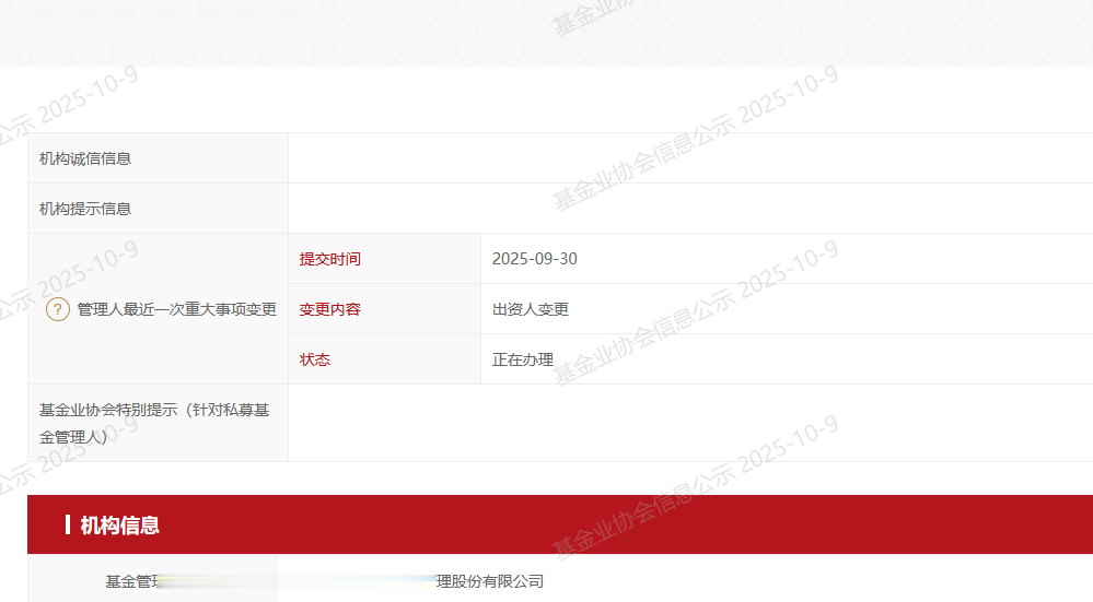 另外,中基协信息显示,东方港湾正在进行出资人变更,提交时间是9月30日,目前正在办理中。