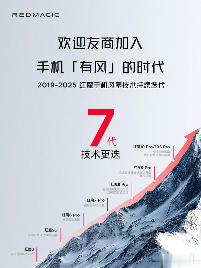 这七年间,红魔持续推动手机散热技术的革新——从开创性的风冷到即将发布的水冷,这一系列技术演进既体现出红魔秉承“追求游戏极致体验”的理念、对手机散热展开的极限探索,也奠定了其在移动电竞领域的技术领先地位。而每一次迭代,都是对极限性能释放的重新定义。