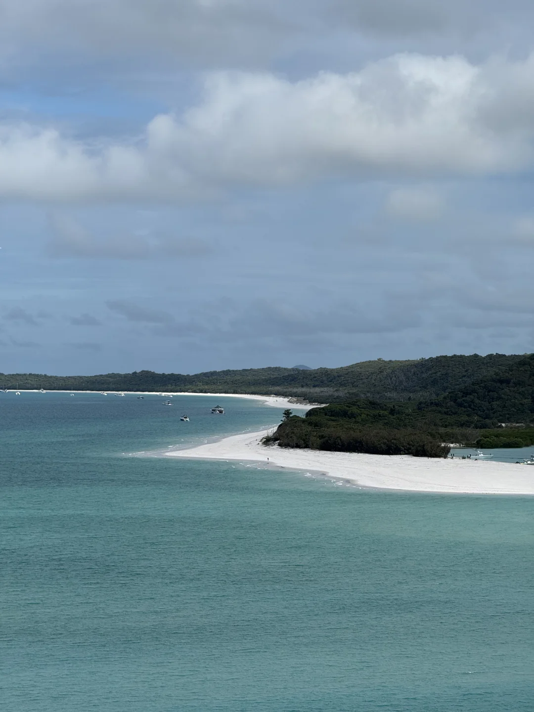 船会先在白沙滩的后面停 向导会带着爬一段小山前往观景台