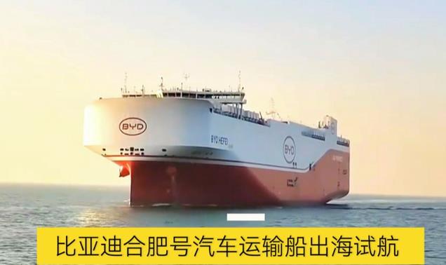 9、比亚迪“合肥号”汽车运输船出海试航。它是双燃料滚装船,可载 7000 辆车,绿色智能。此前“BYD CHANGZHOU”已交付运营